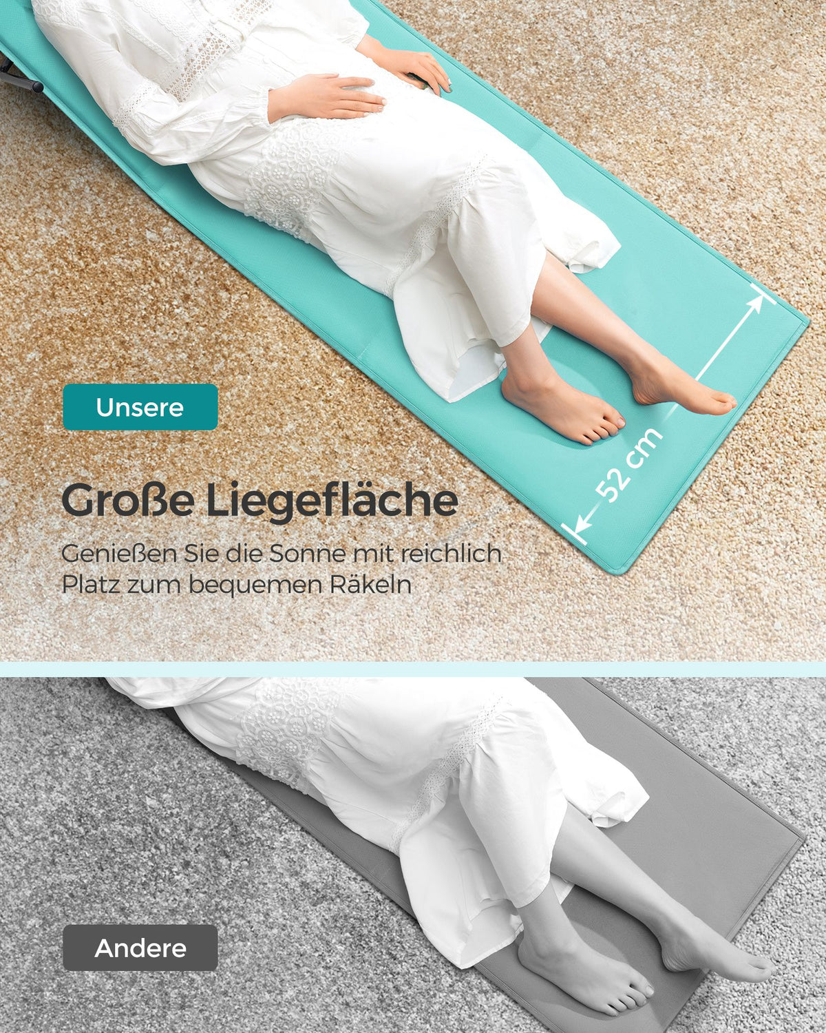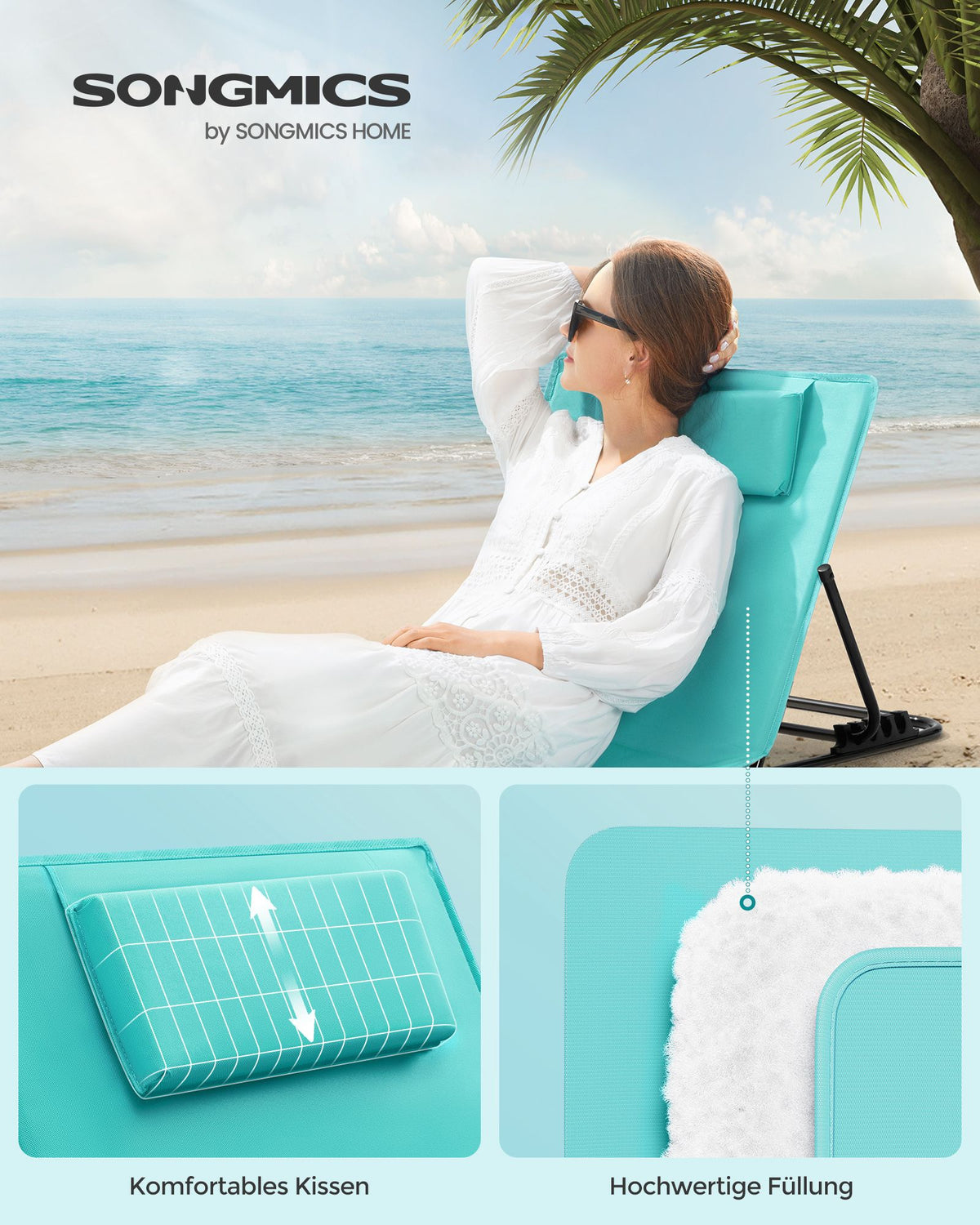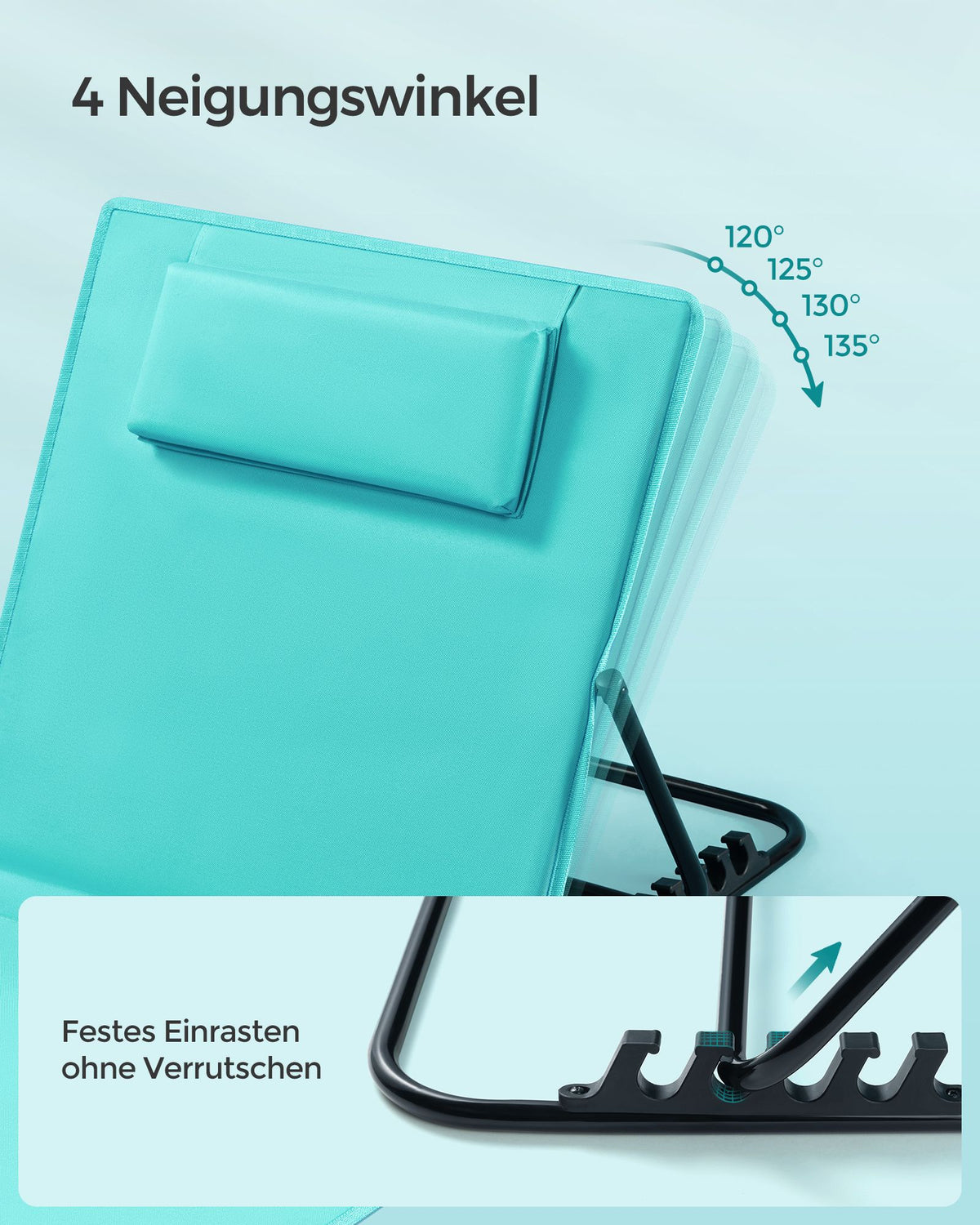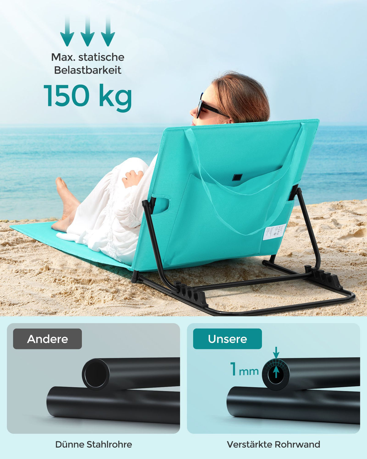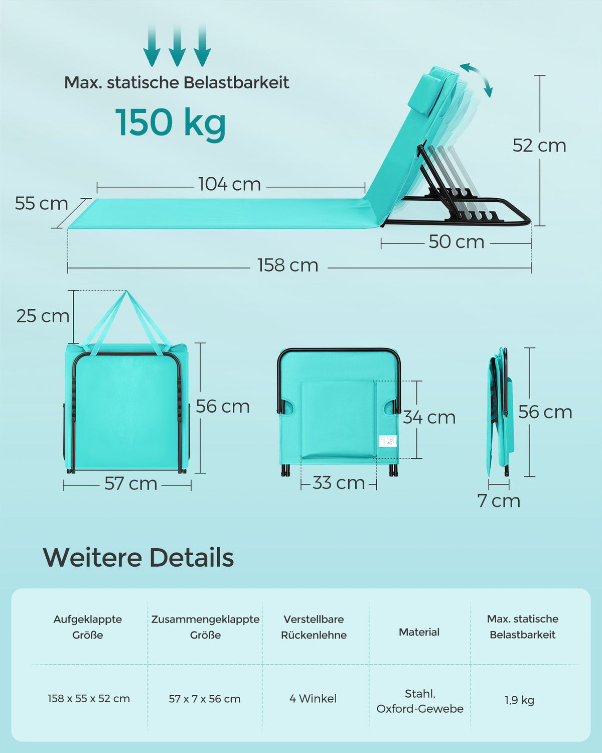Strandstoel met handgreep en verstelbare rugleuning zeeblauw 158 x 55 cm