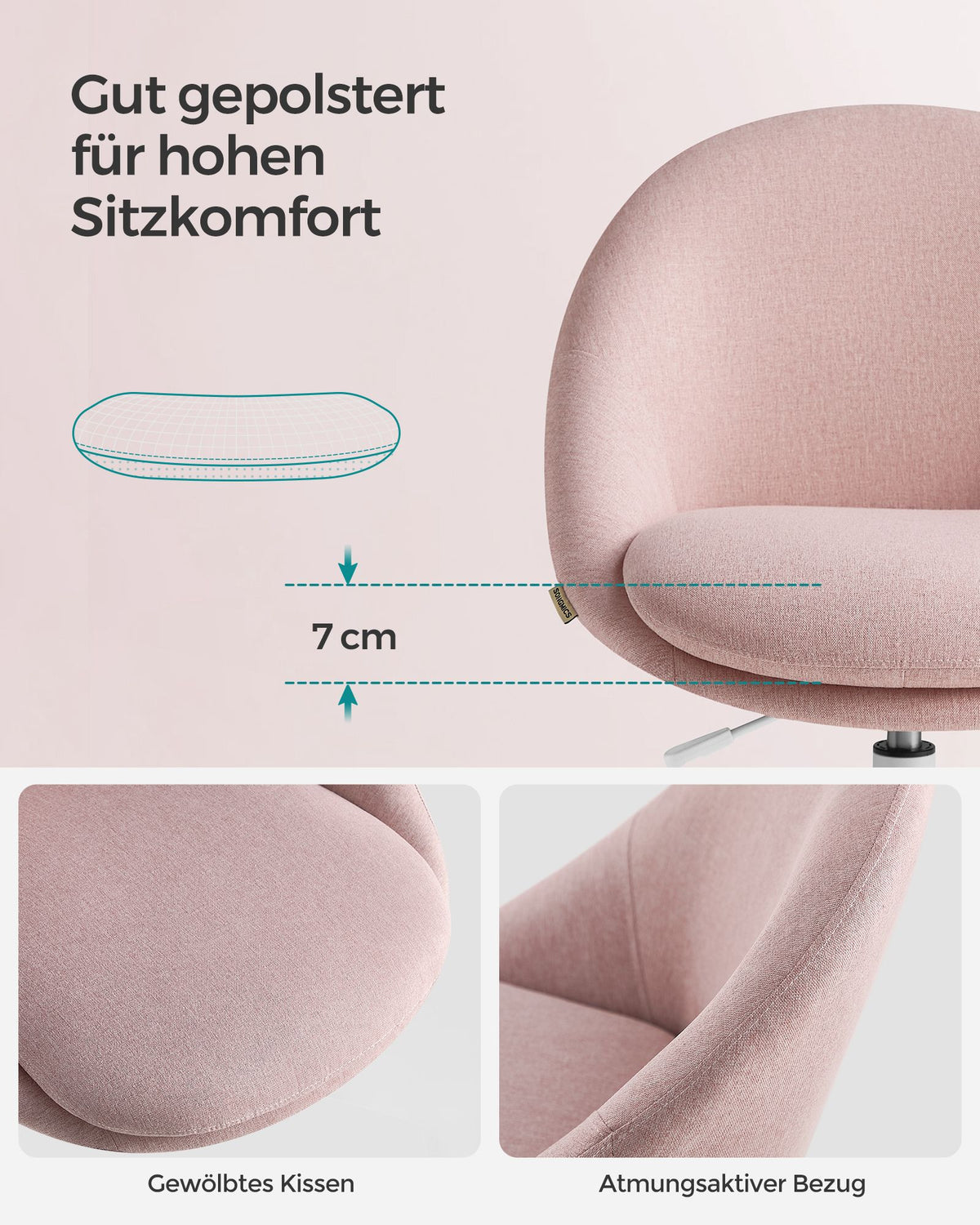Thuiskantoorstoel in hoogte verstelbaar roze 57 cm