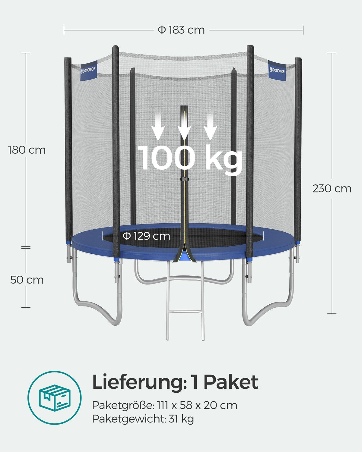 Trampoline Ø 183 cm met net voor tuin blauw
