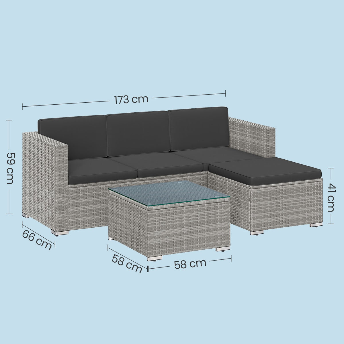Tuinmeubelset, terrasmeubelen van PE polyrotan, balkonmeubelen met kussens en glazen tafel 60 x 173 x 66 cm - GGFB35005G05