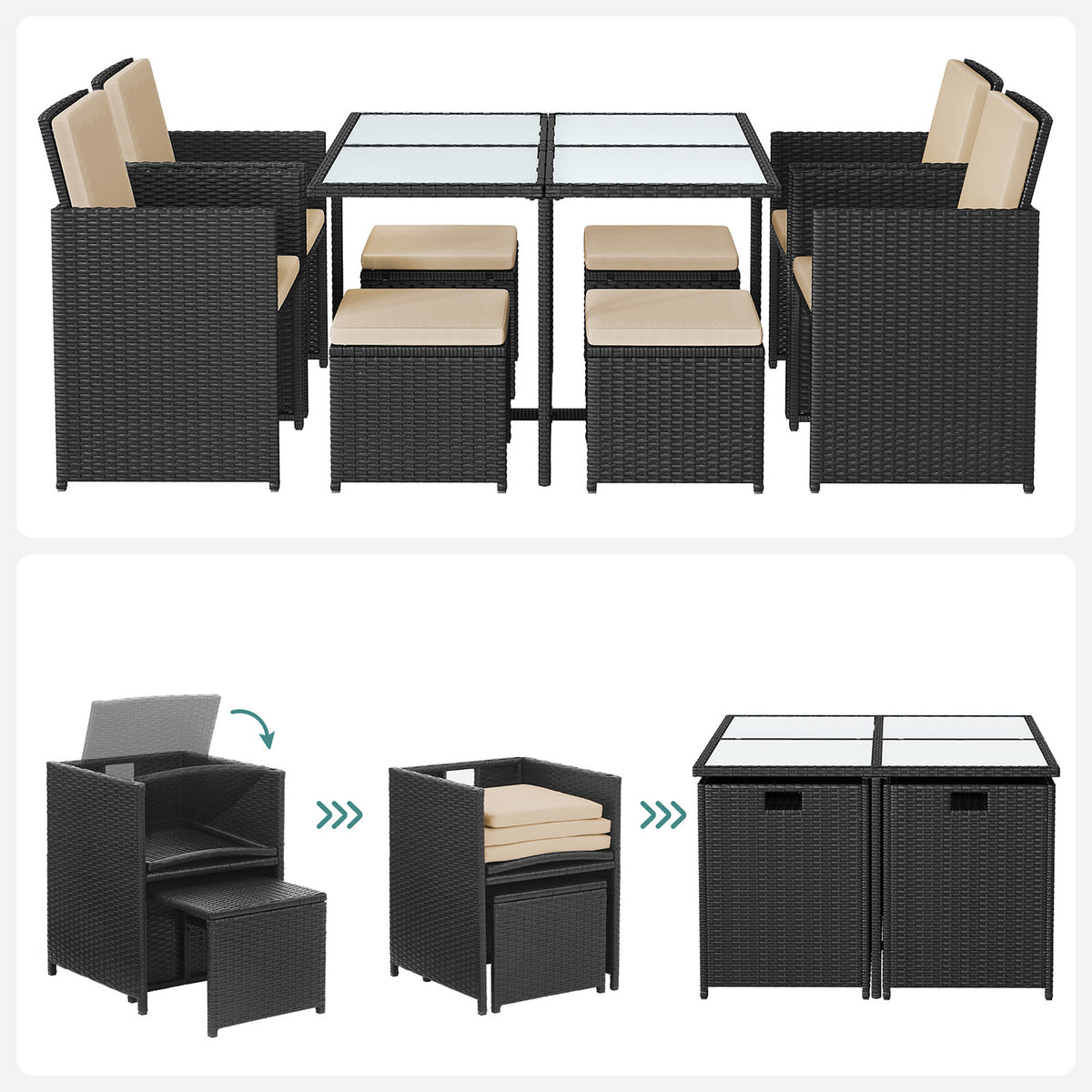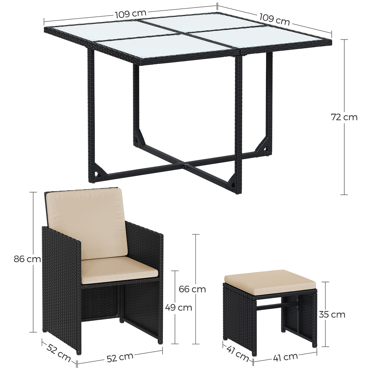 Tuinmeubelset van 9 van polyrotan 52 x 52 x 86 cm