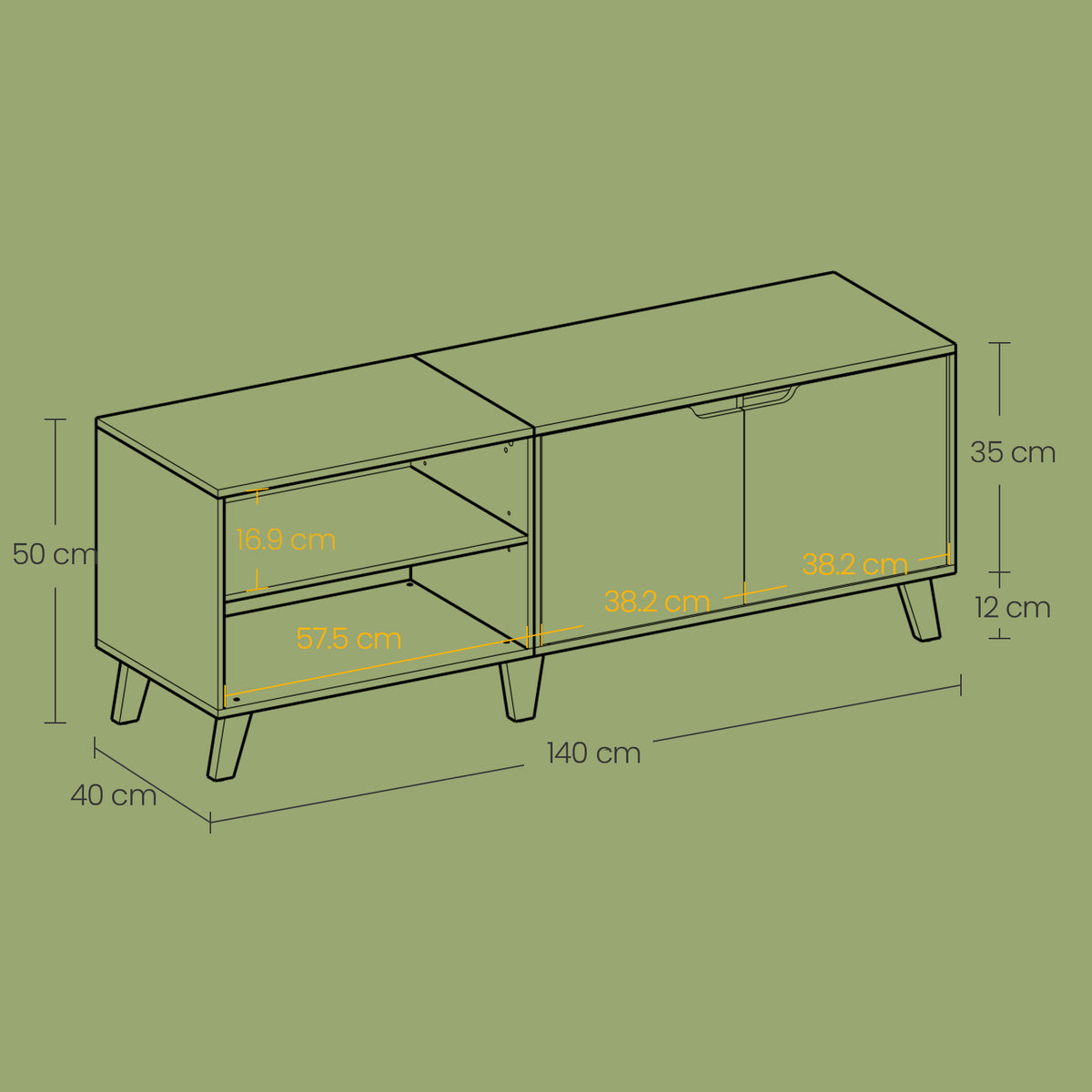TV-meubel, tv-tafel met 2 deuren, 140 cm lang - LTVB35027N01