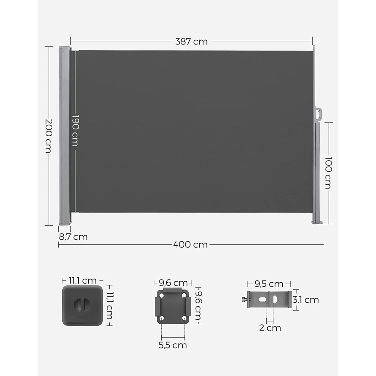 Uitschuifbaar zijluifel 200 x 400 cm voor balkon - B34GSA204G02