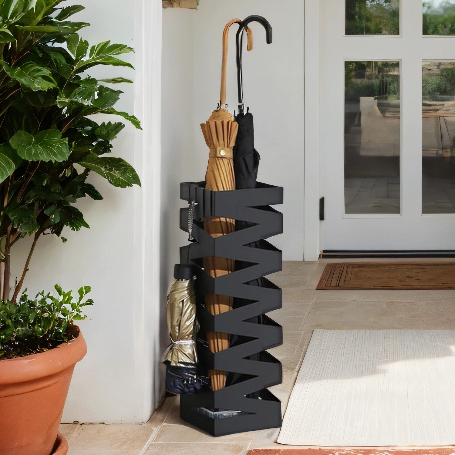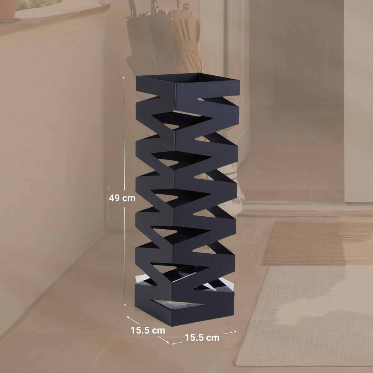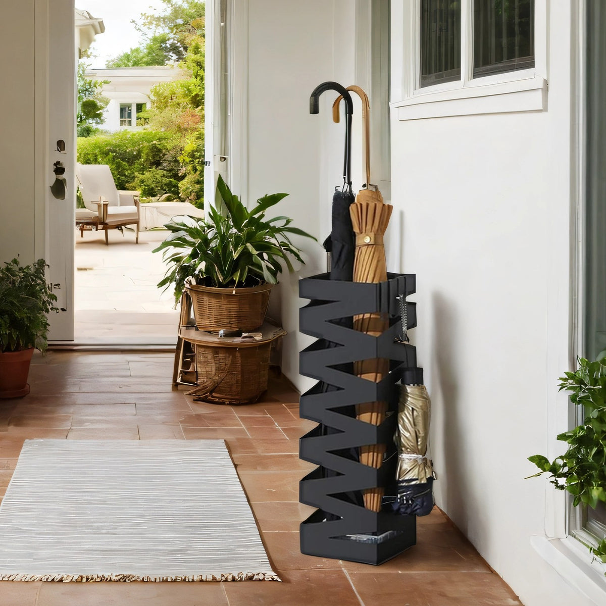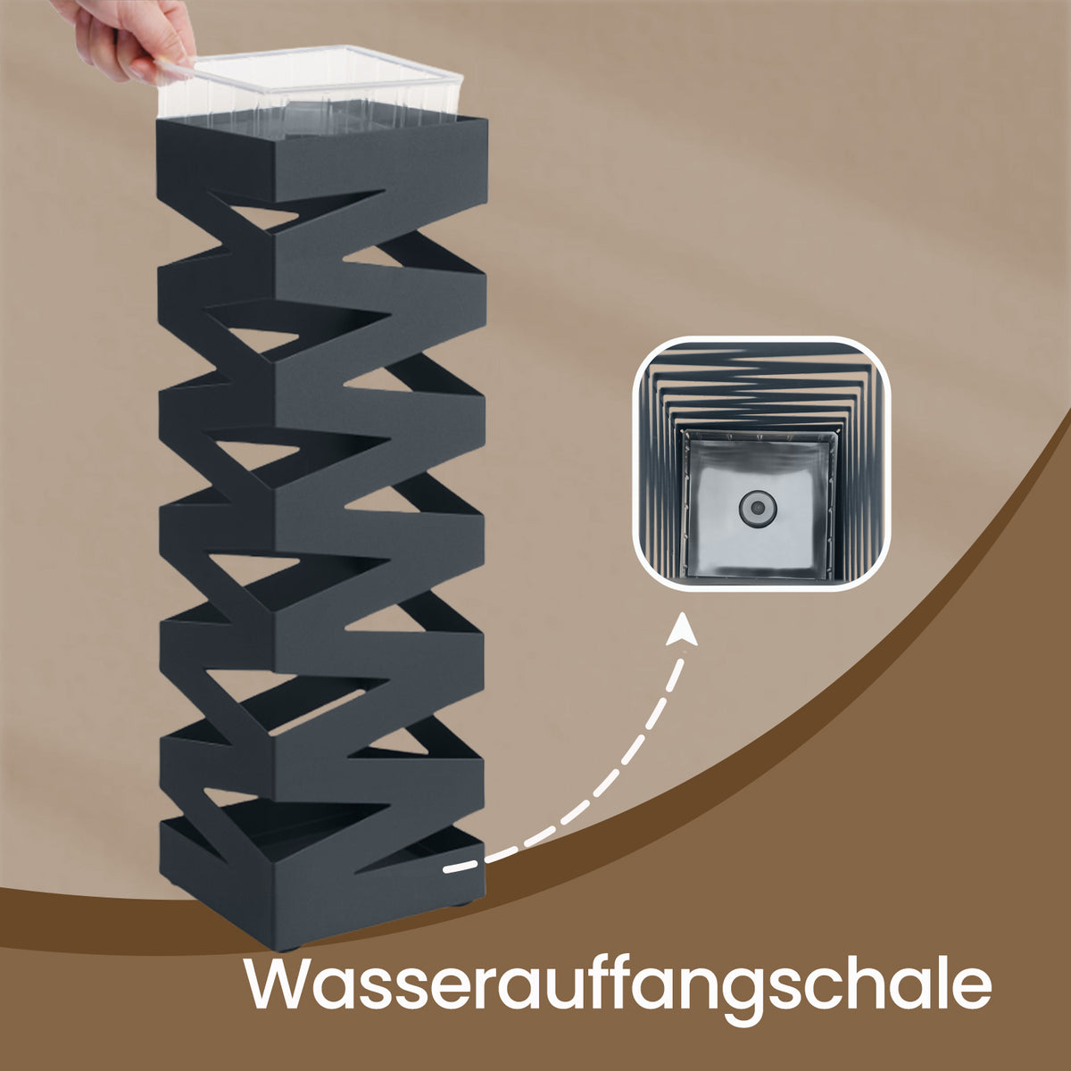 Vierkante paraplubak, metalen paraplubak, met wateropvangbak en 4 haken 5 x 49 cm - LUCB3516B