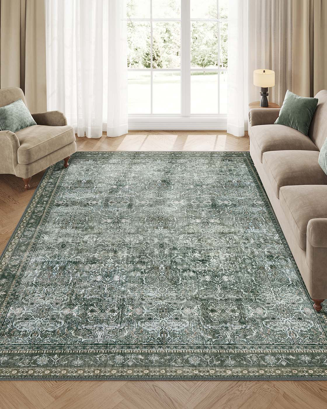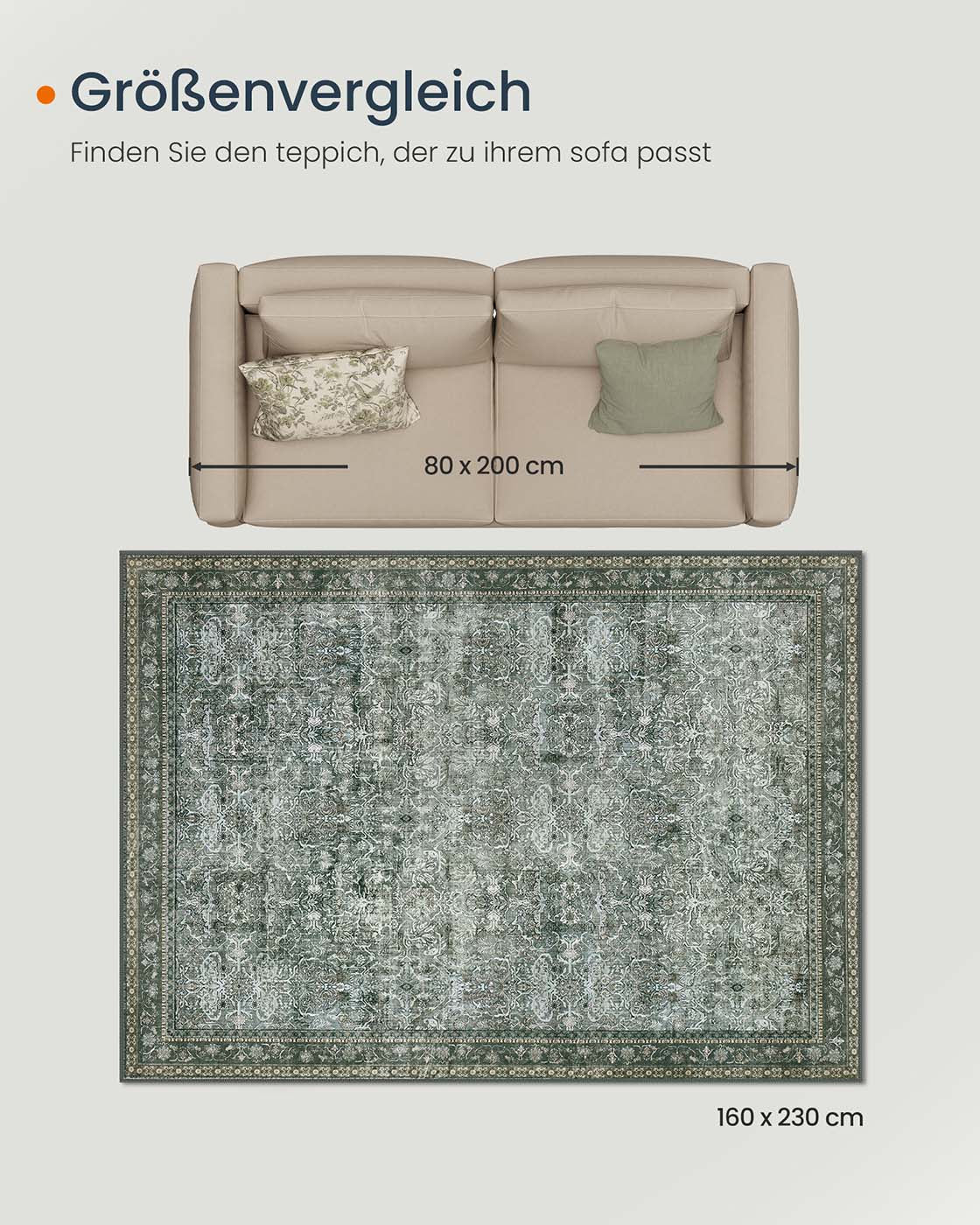 Vintage-stijl vloerkleed 160 x 230 cm machinewasbaar bosgroen