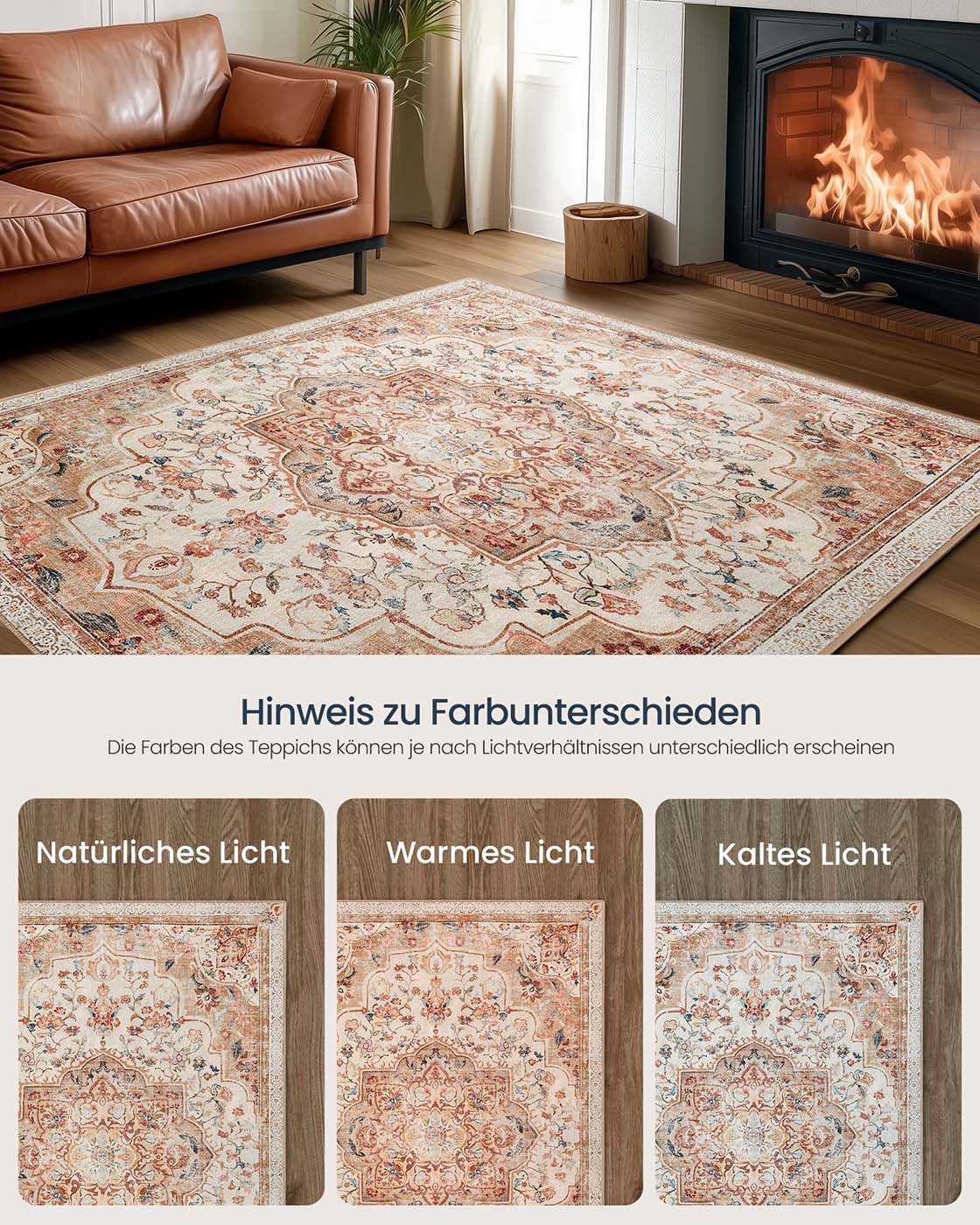 Vintage tapijt 200 x 290 cm antislip cappuccino beige