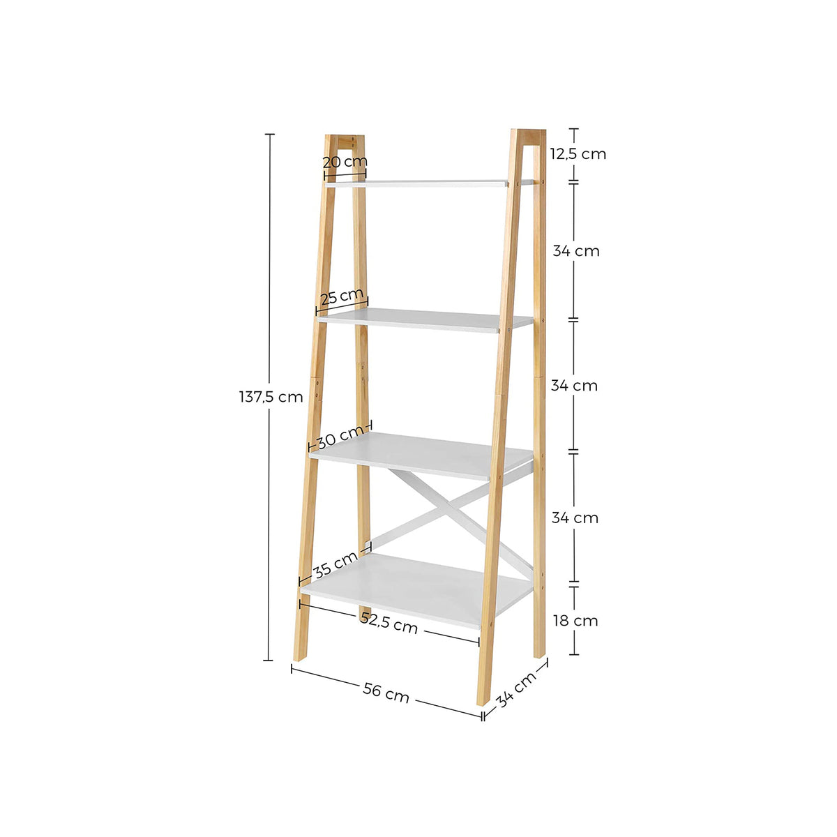 Vrijstaande plank mat wit-natuur 56 x 34 x 137,5 cm