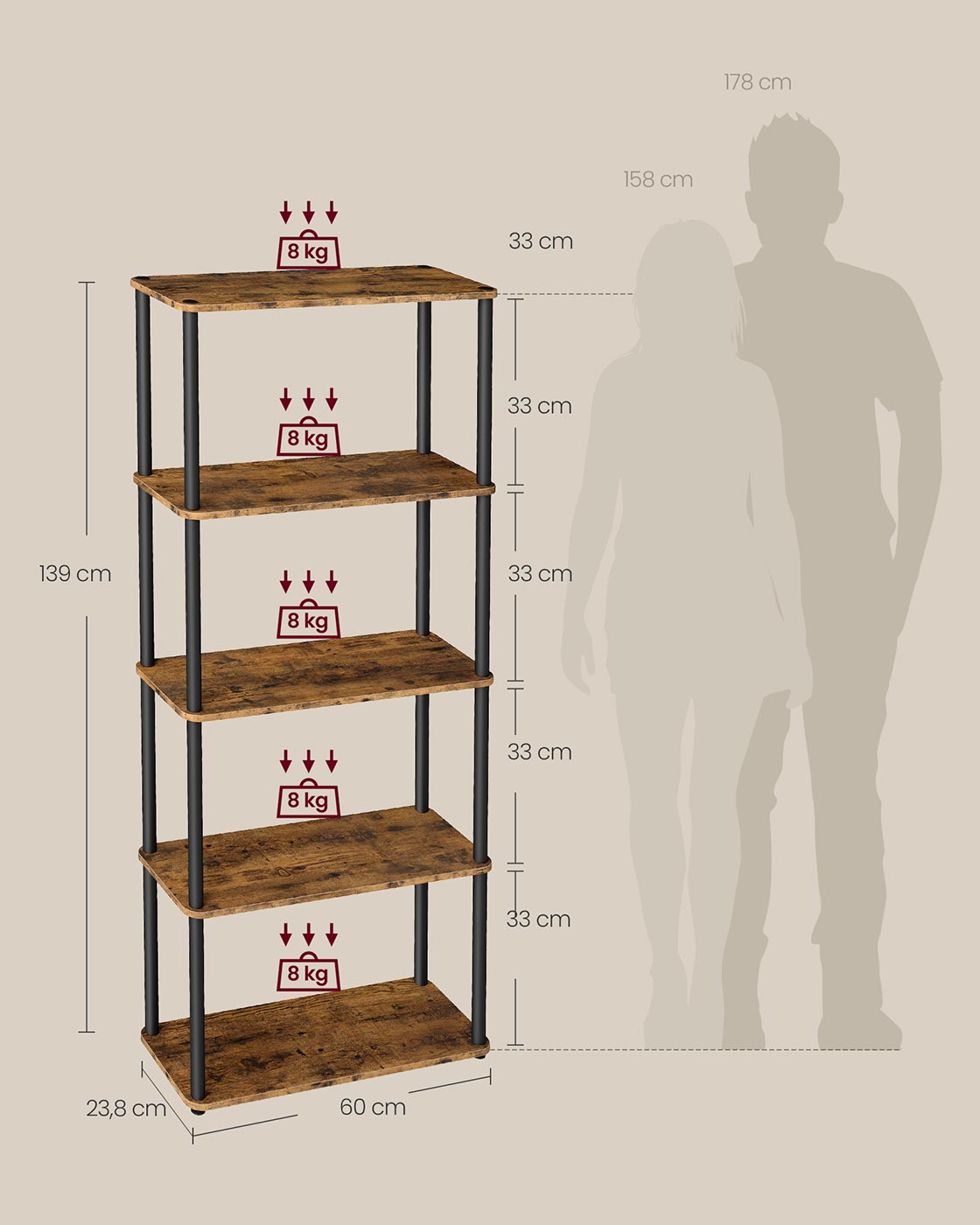 Vrijstaande plank met gereedschapsloze montage en vijf niveaus 8 x 38 x 139 cm - LLS165K01