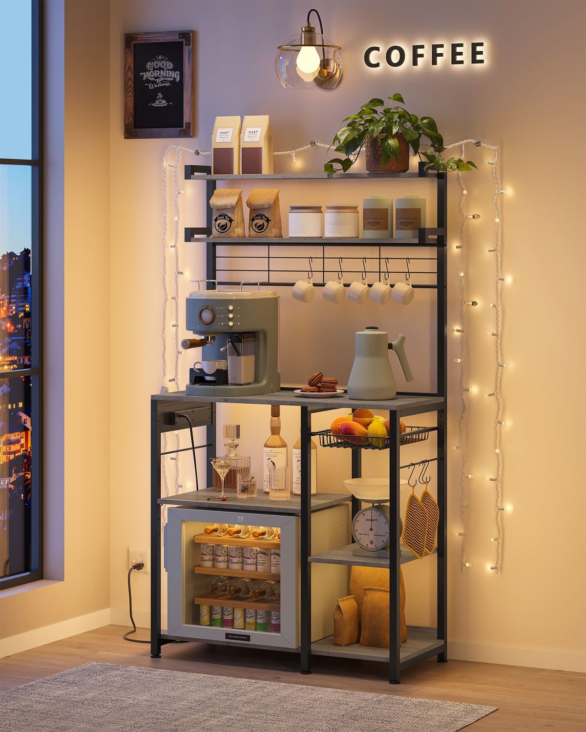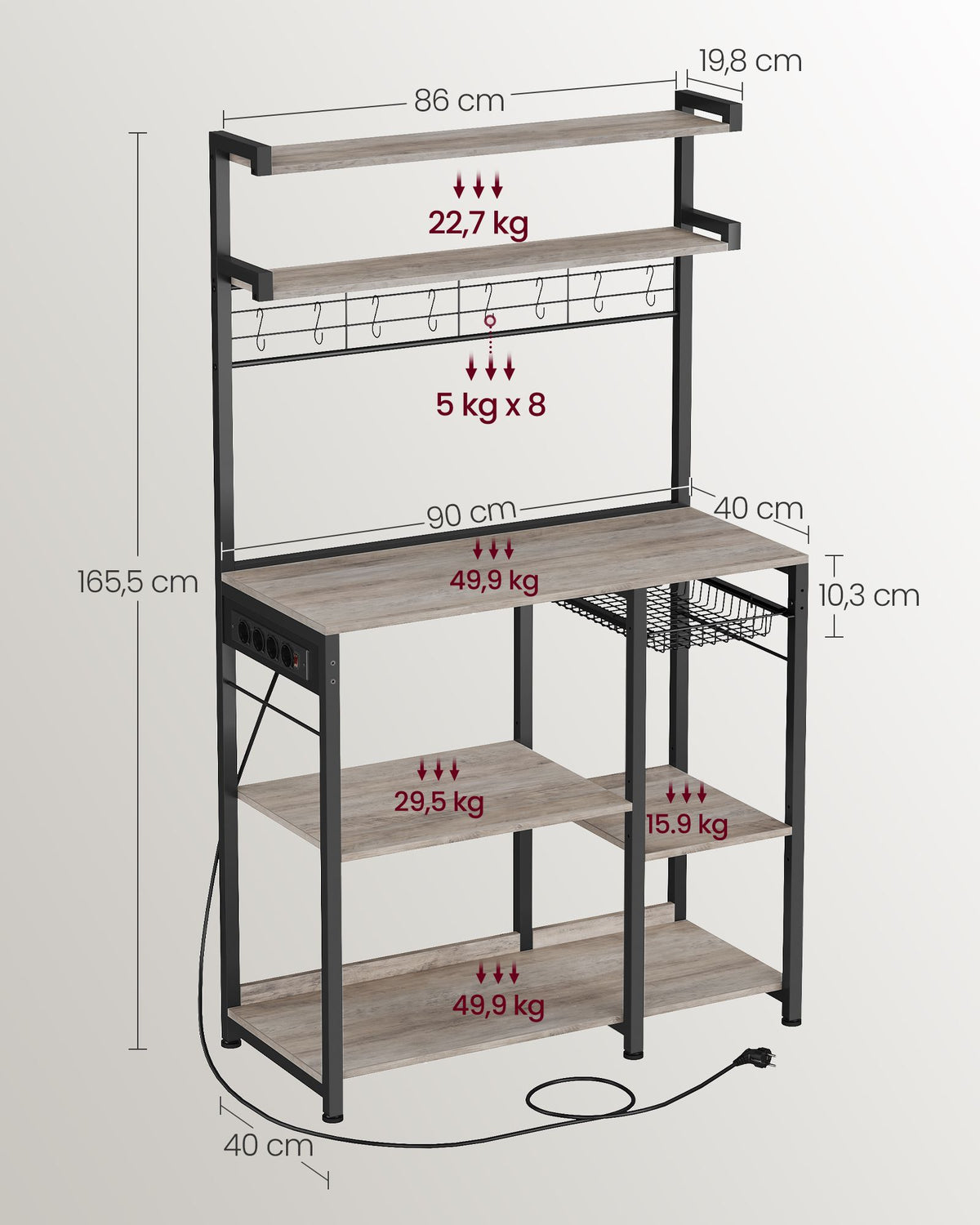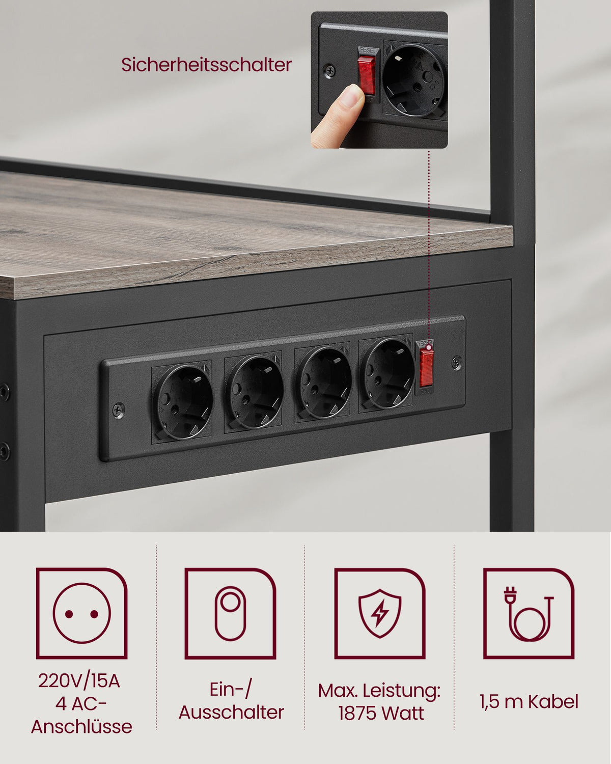 Vrijstaande plank met stopcontacten en mand, gevlekt greige-inktzwart 5 cm