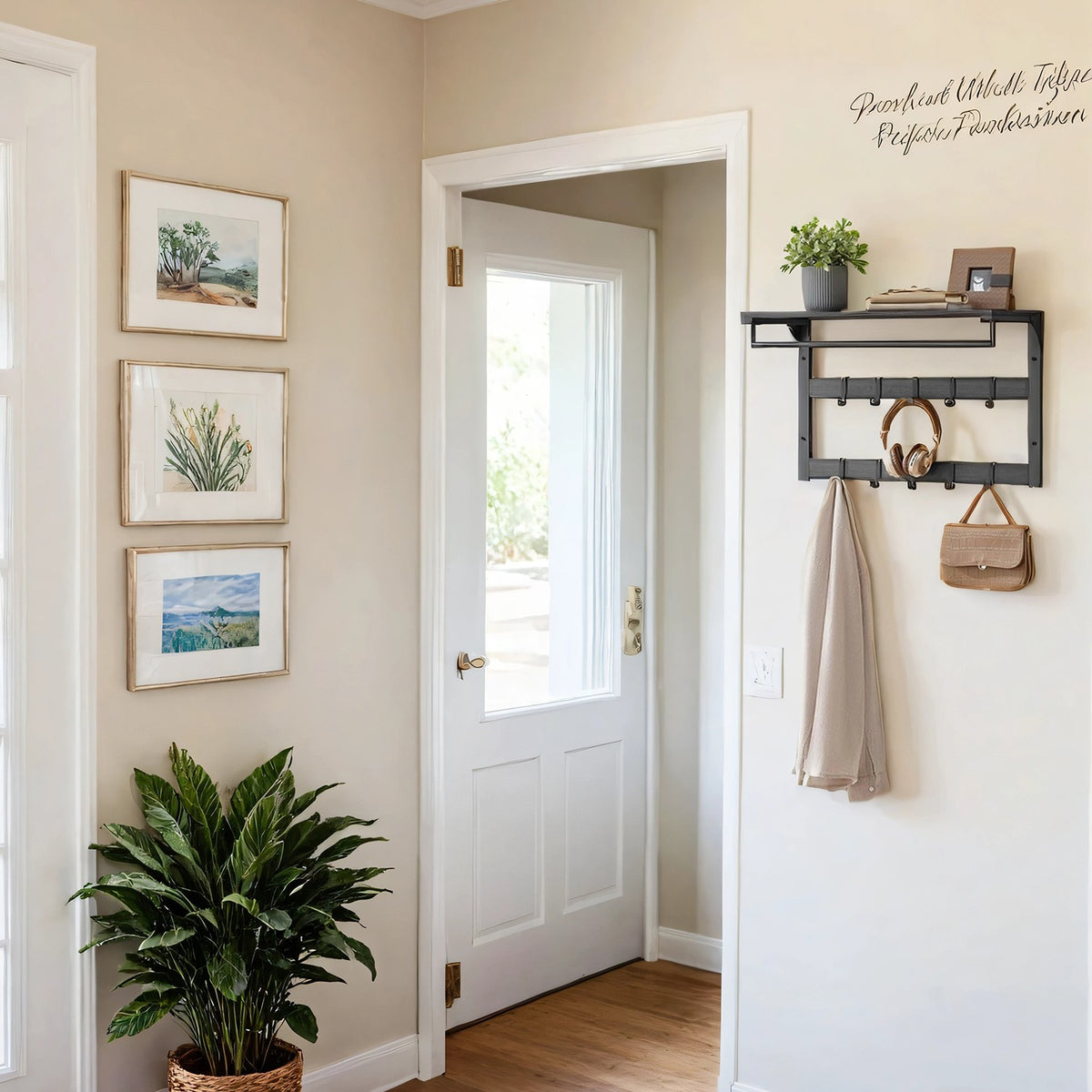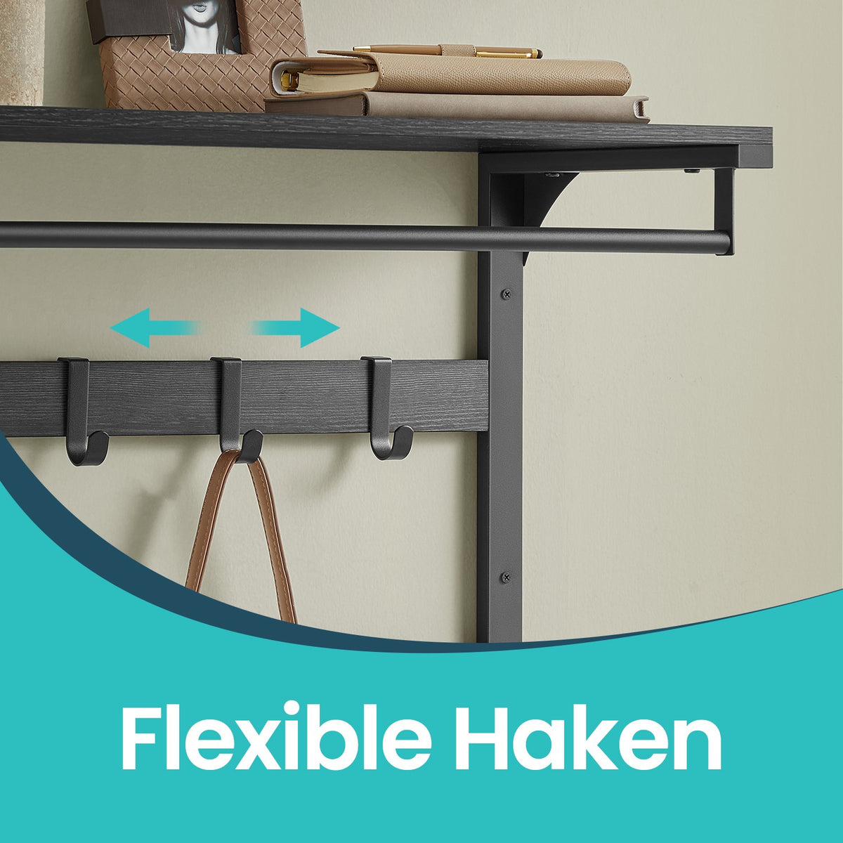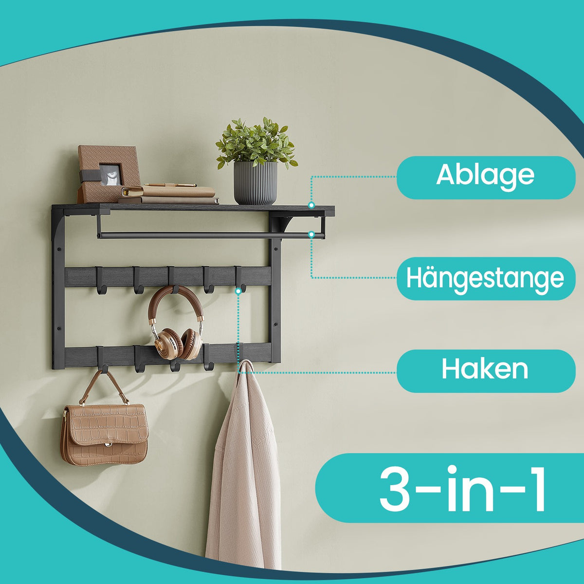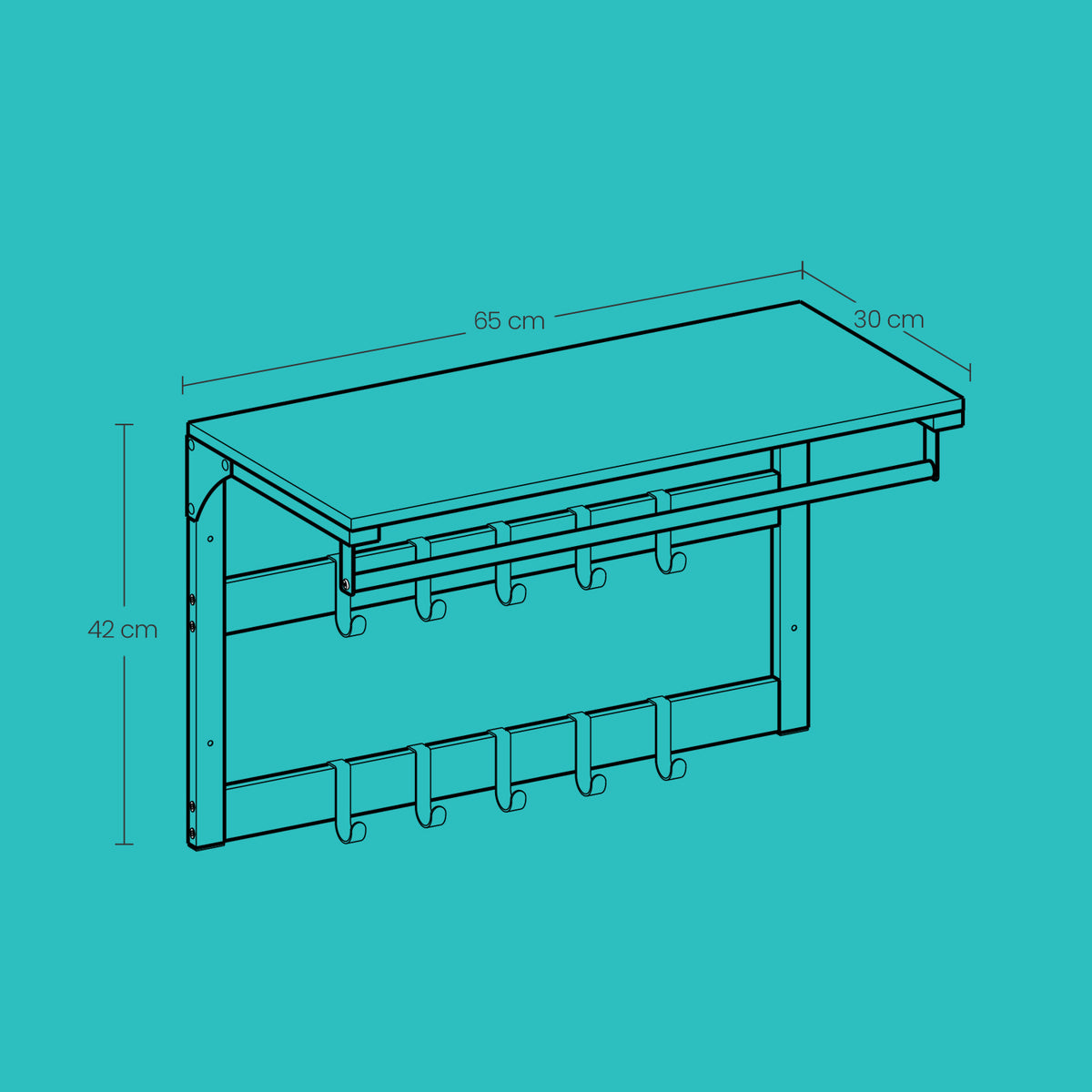 Wandkapstok, met plank, wandplank met 10 afneembare haken 30 x 65 x 42 cm - LCRB35101B04