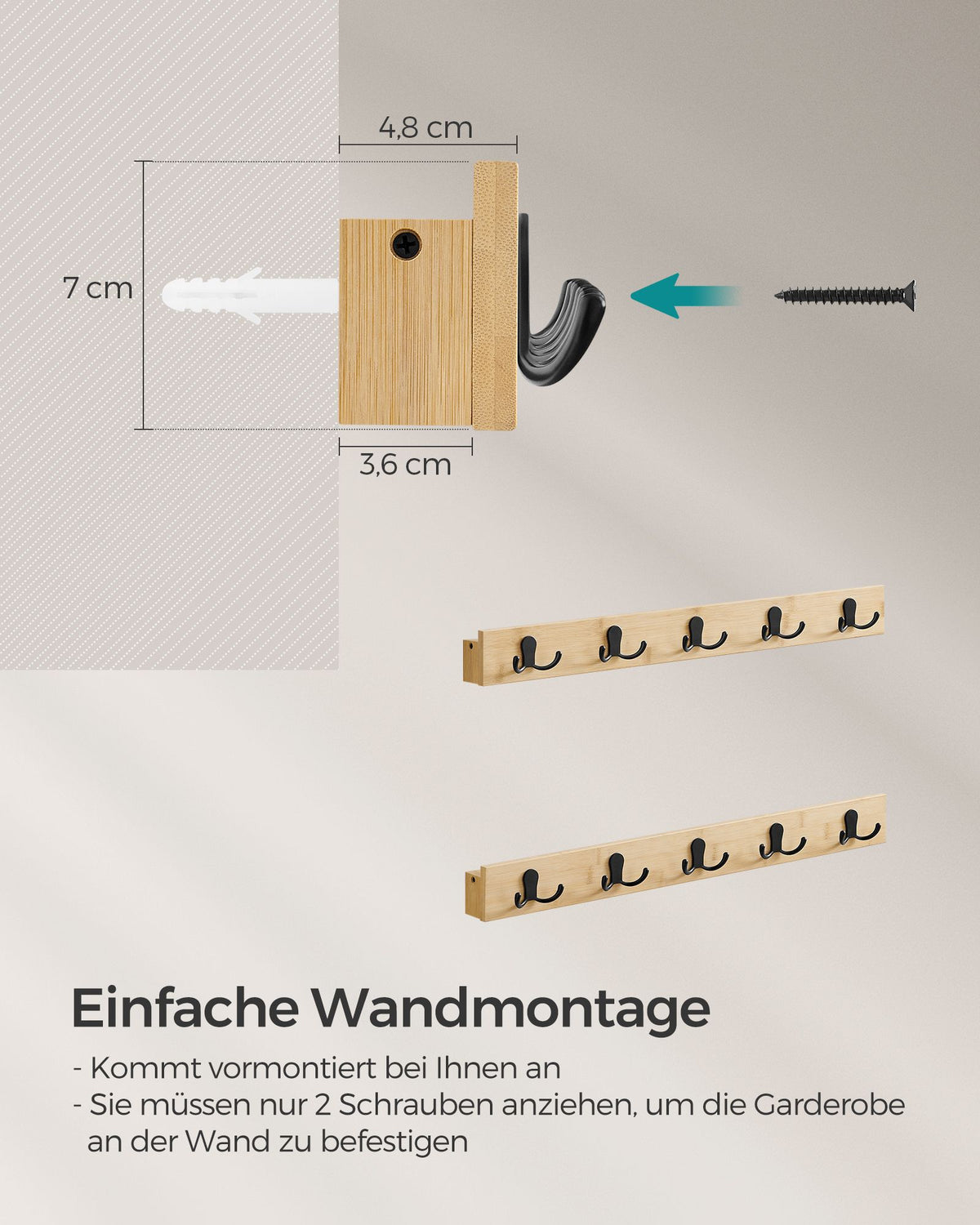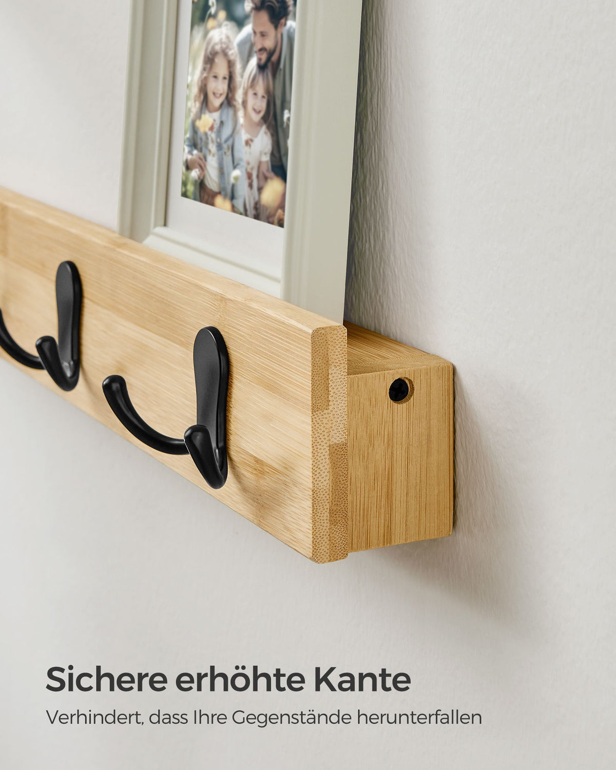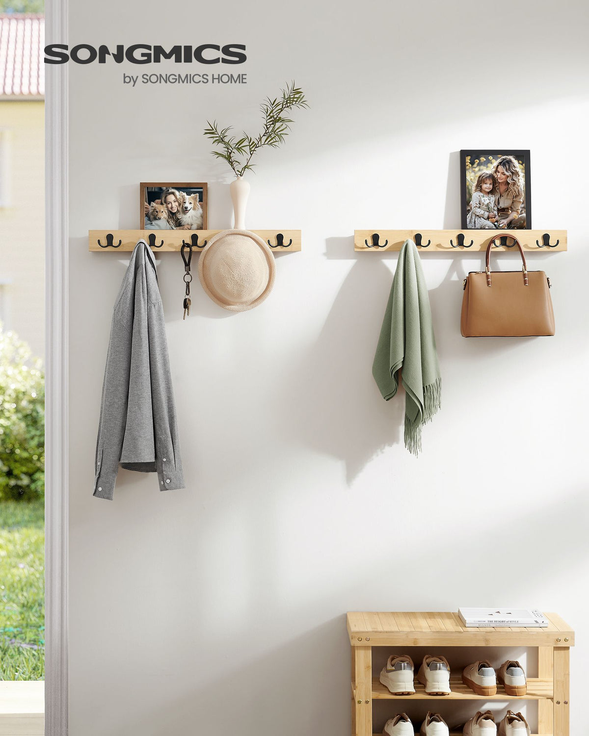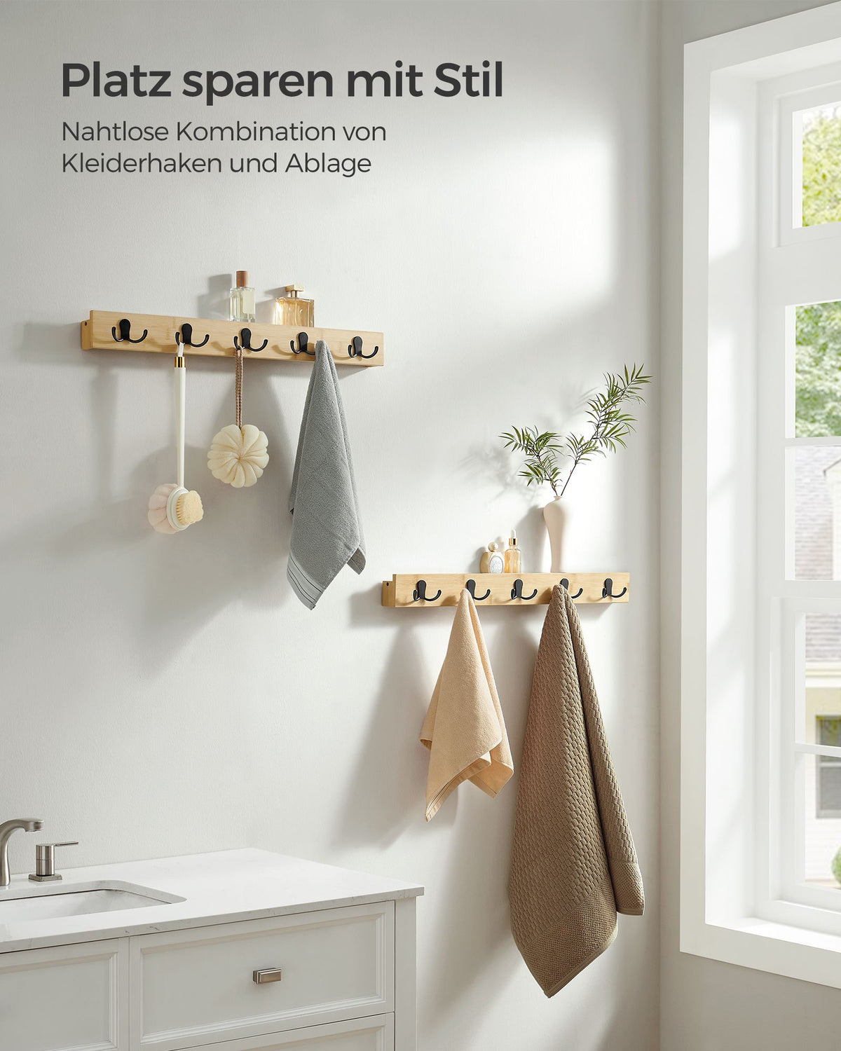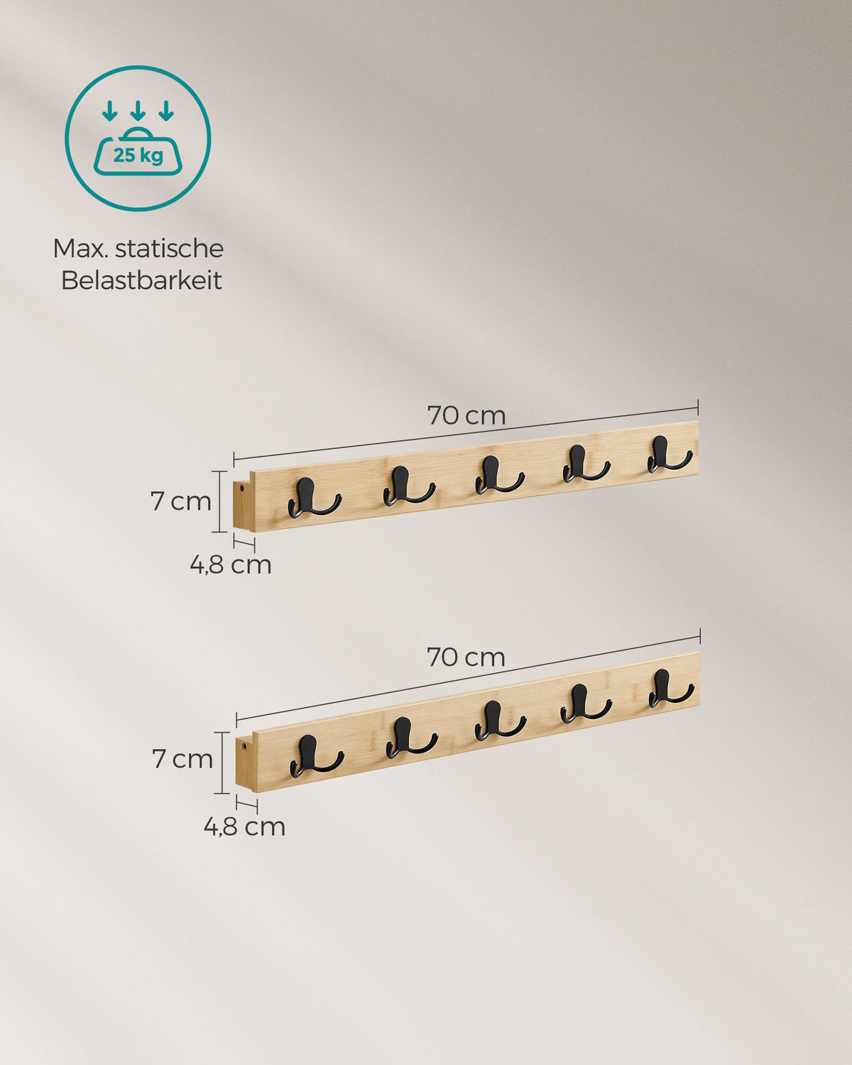 Wandkapstok set van 2 met plank naturel beige 8 x 70 x 7 cm