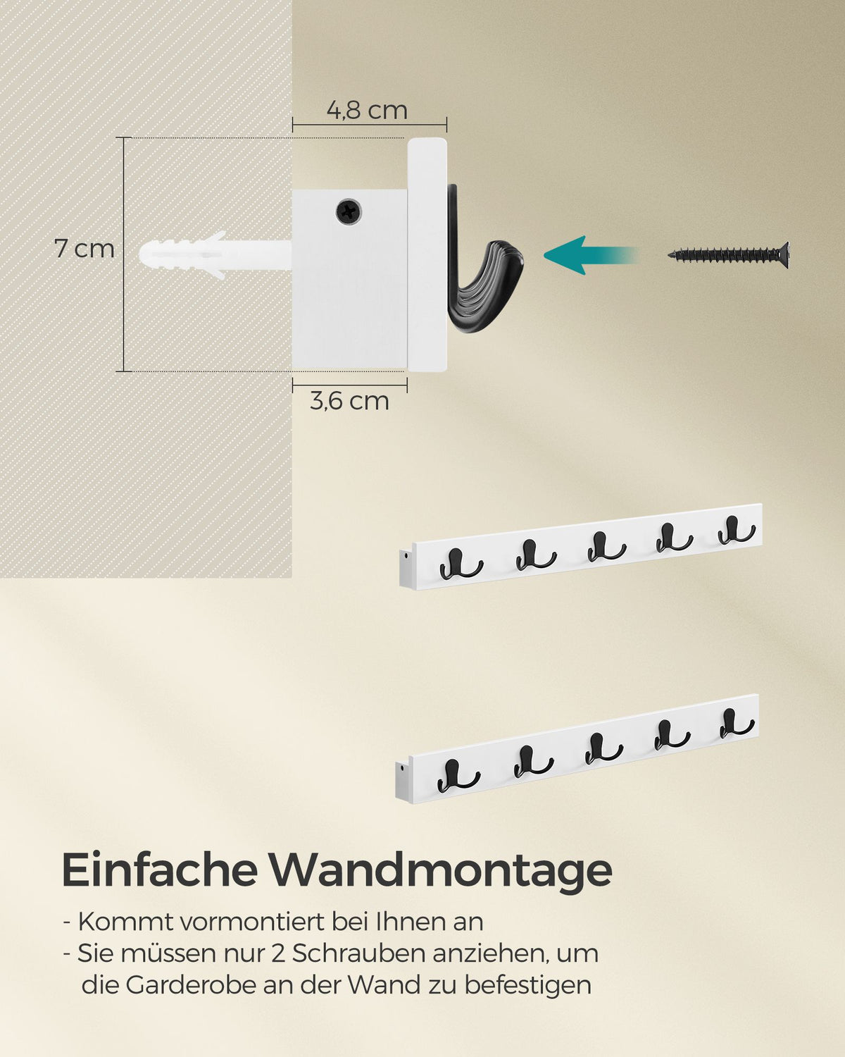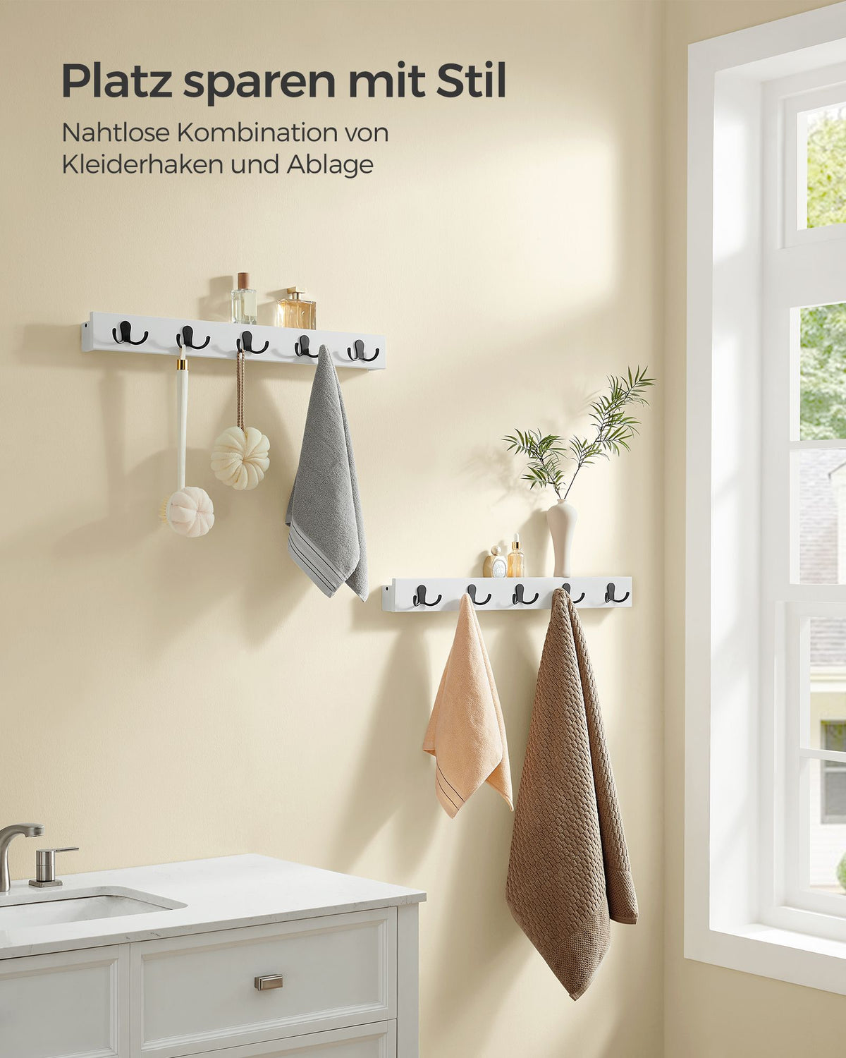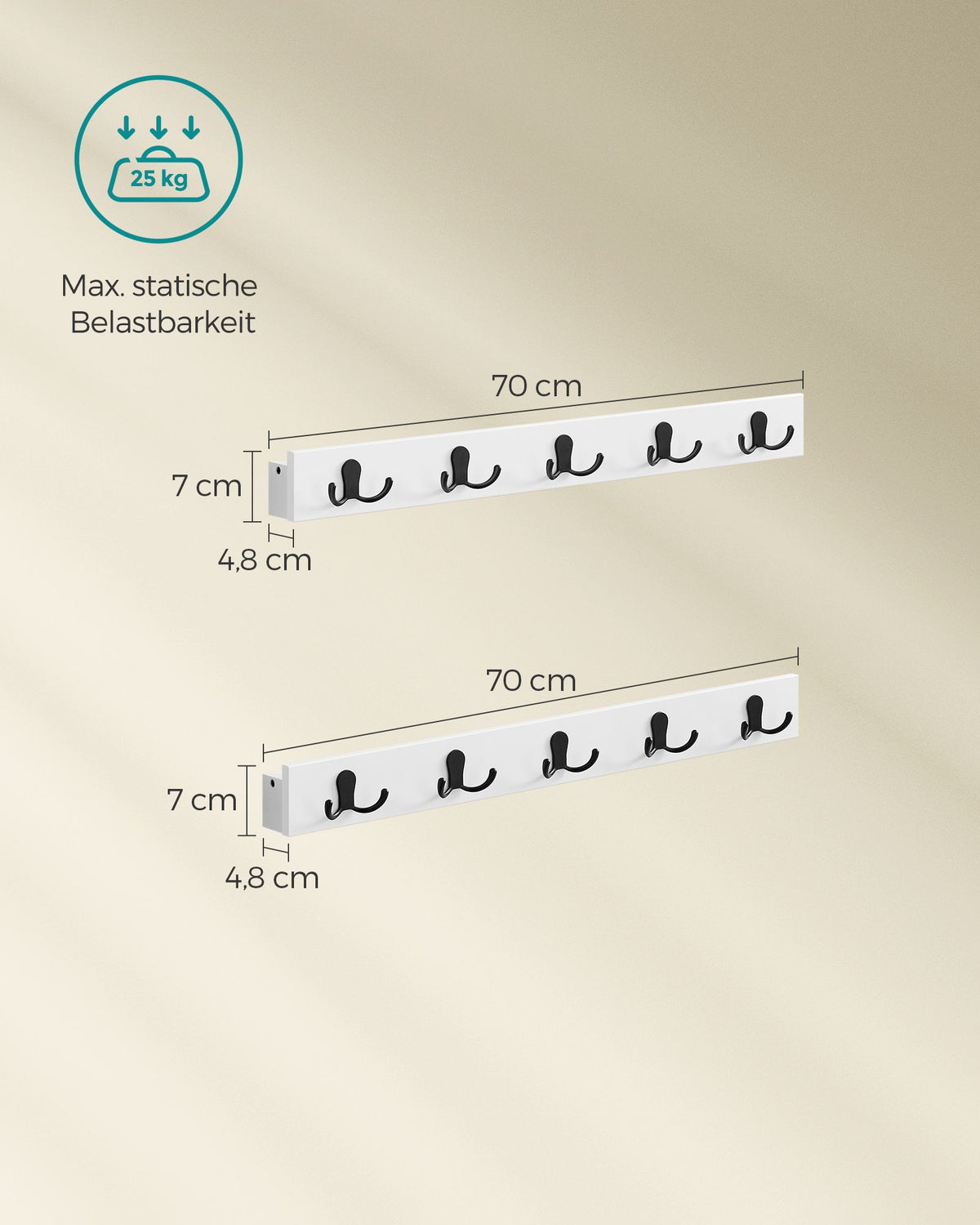 Wandkapstok set van 2 met plankje wolkwit 8 x 70 x 7 cm