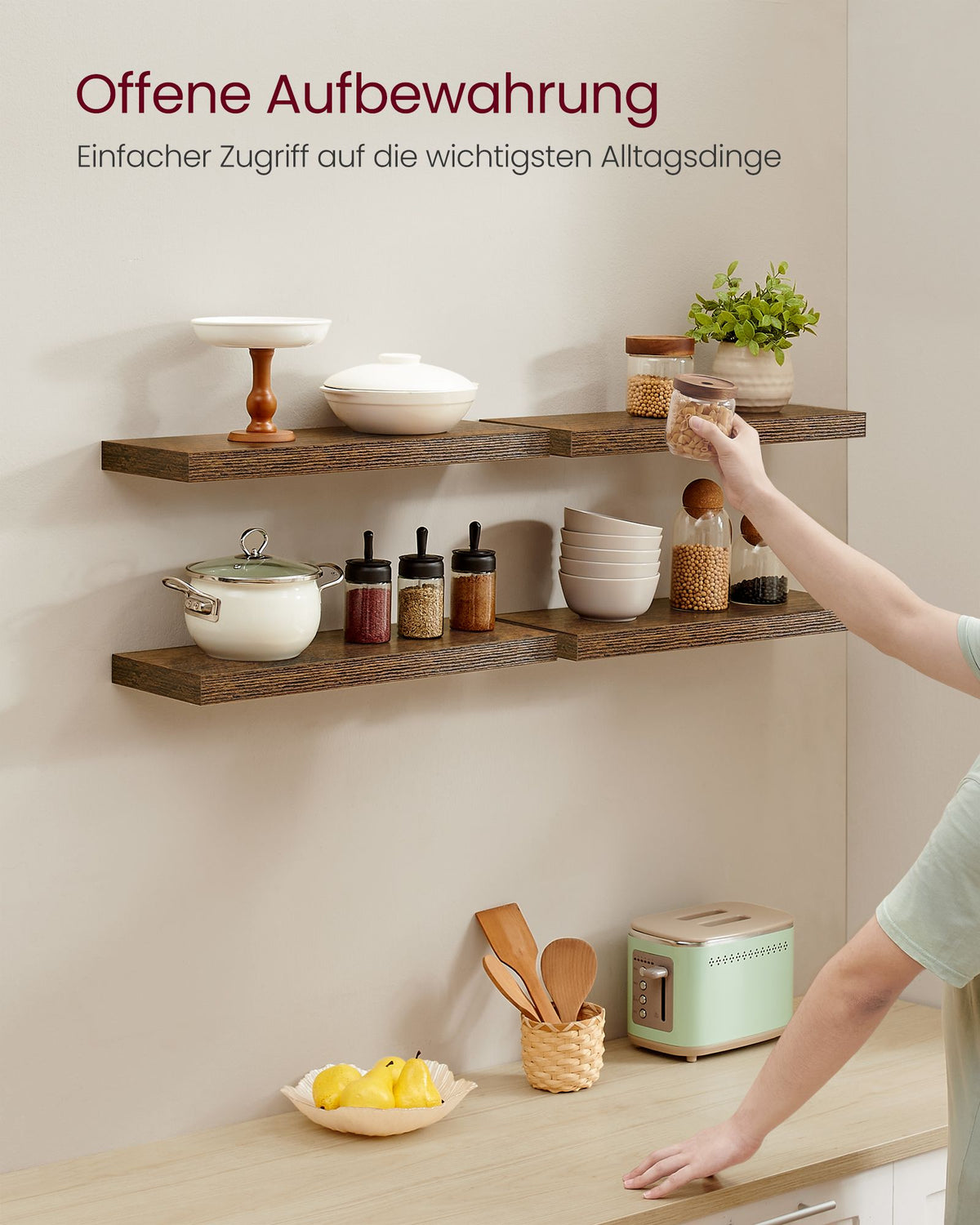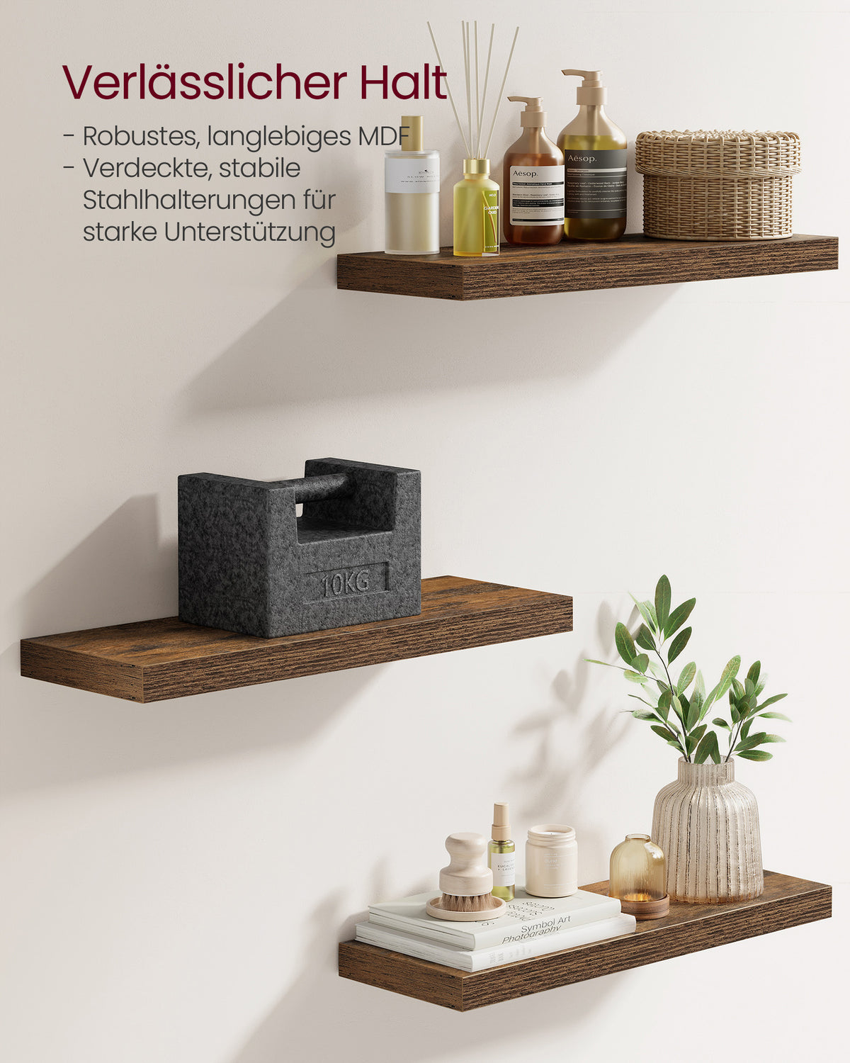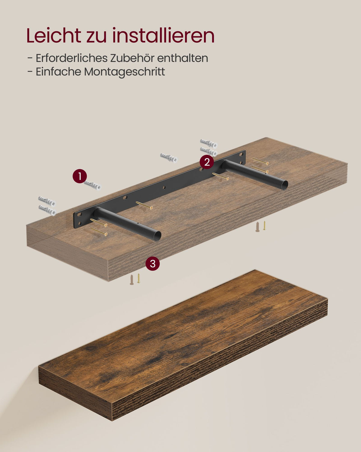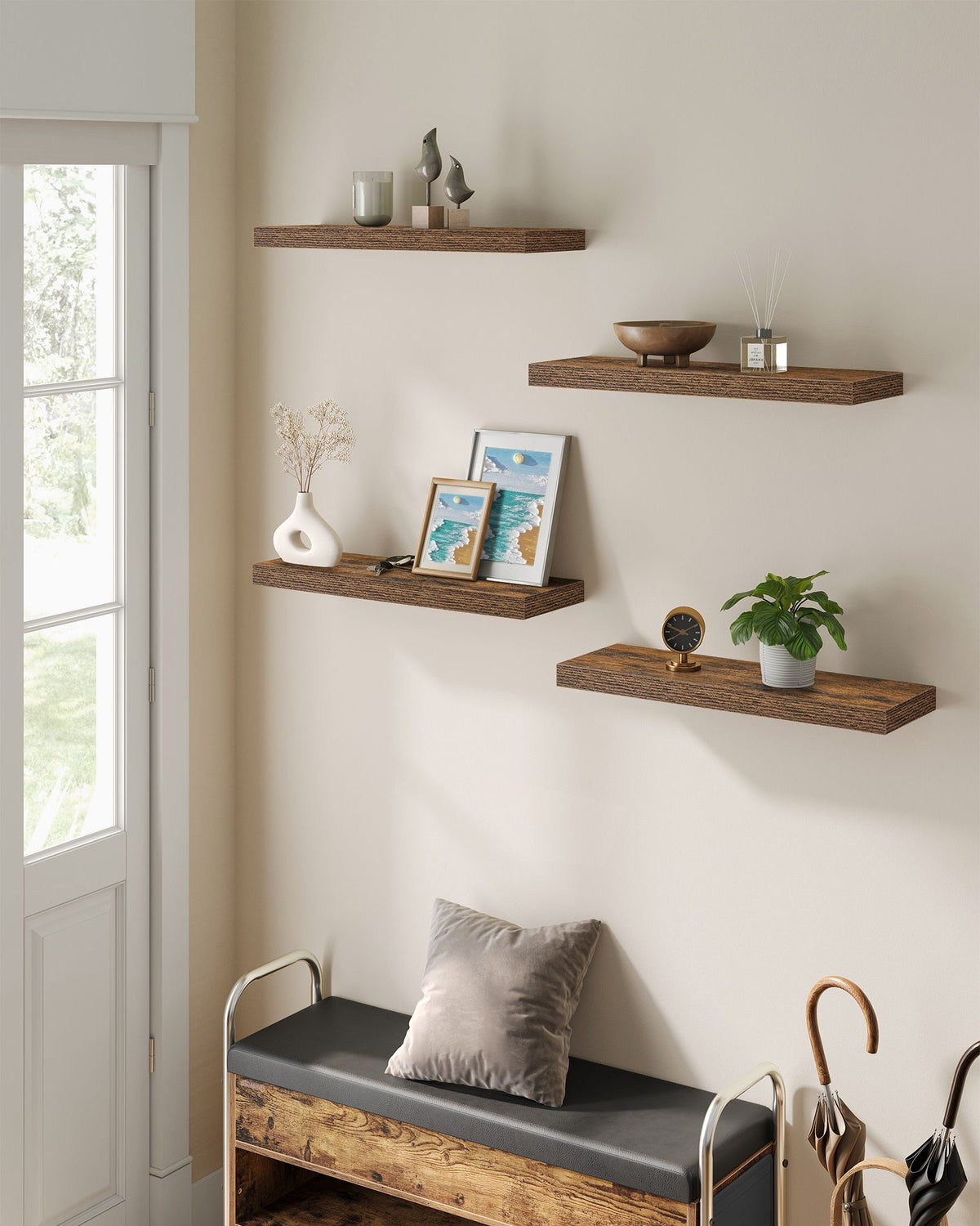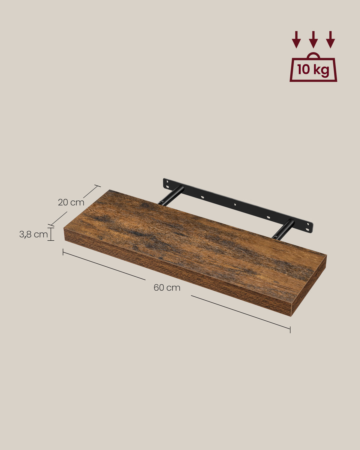 Wandplankenset van 4, 20 x 60 x 3,8 cm, vintage bruin