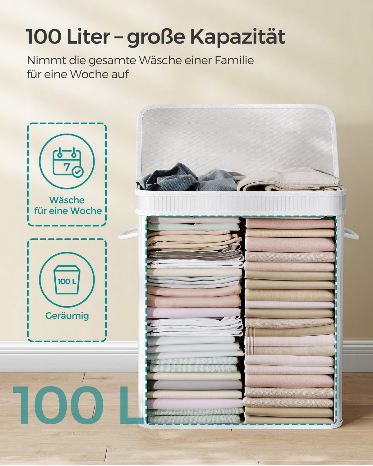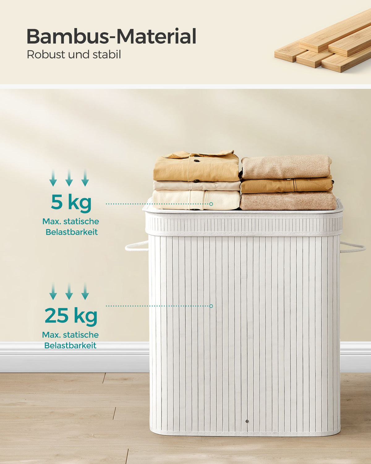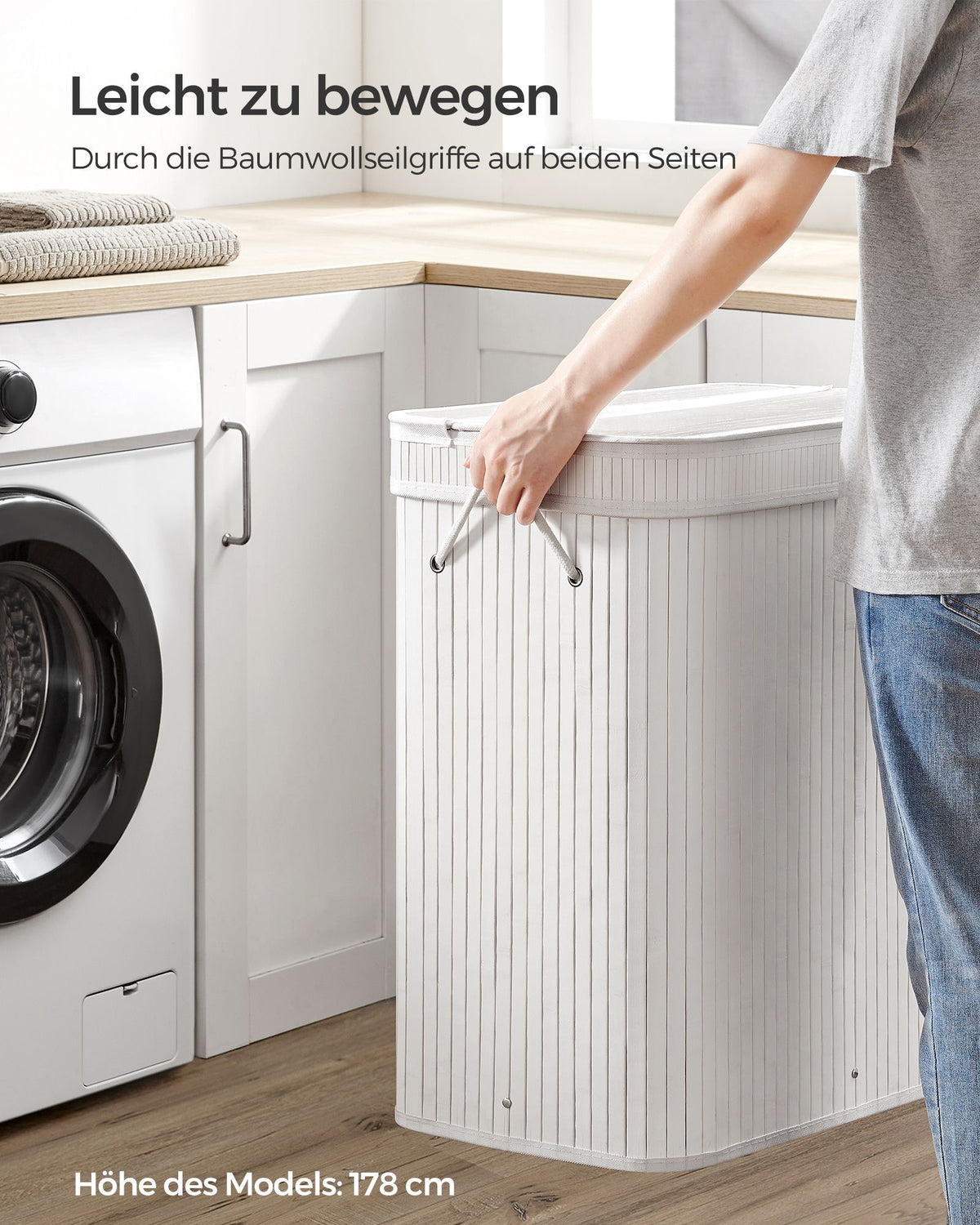 Wasmand 100 liter van bamboe met deksel en handgrepen wit 5 x 61 cm