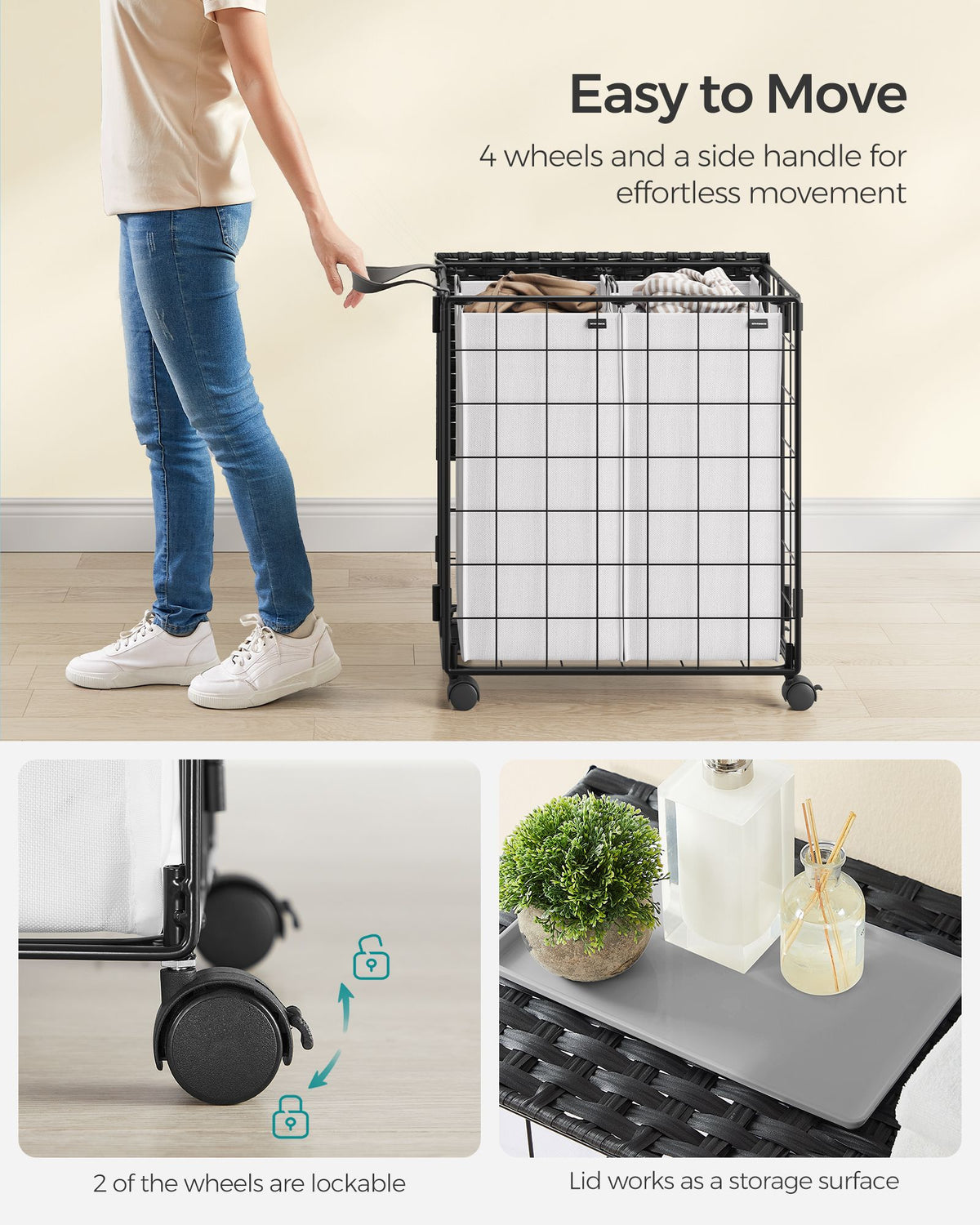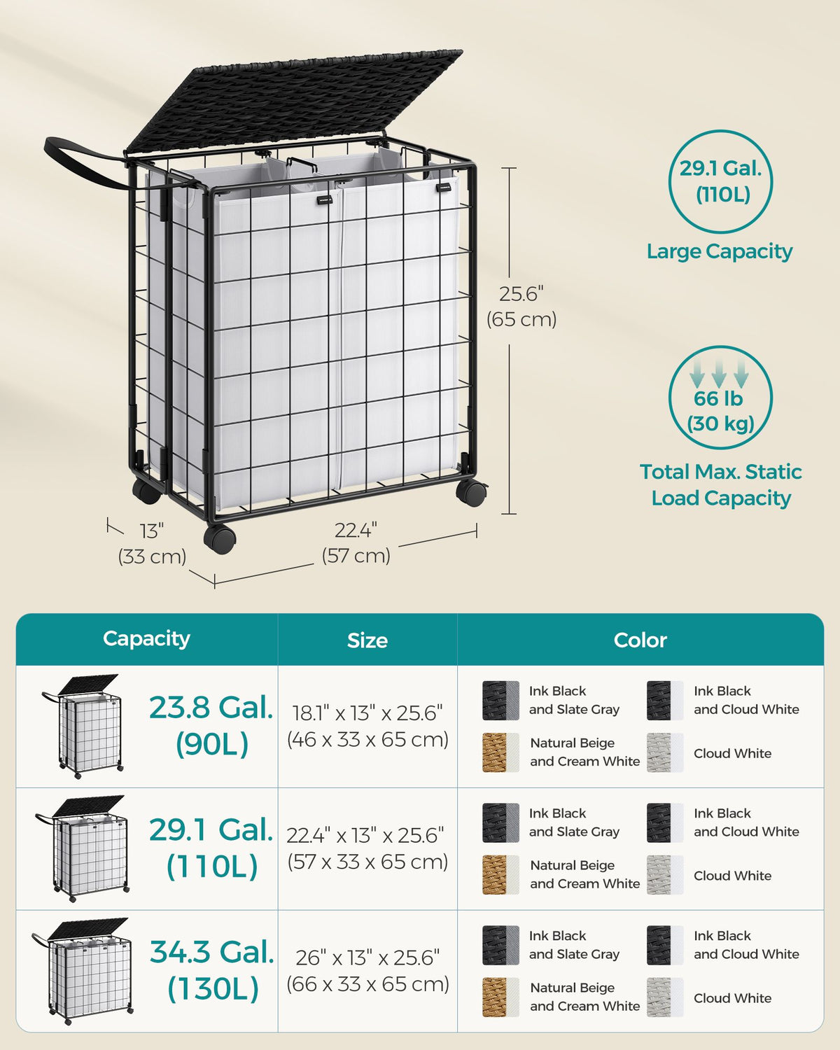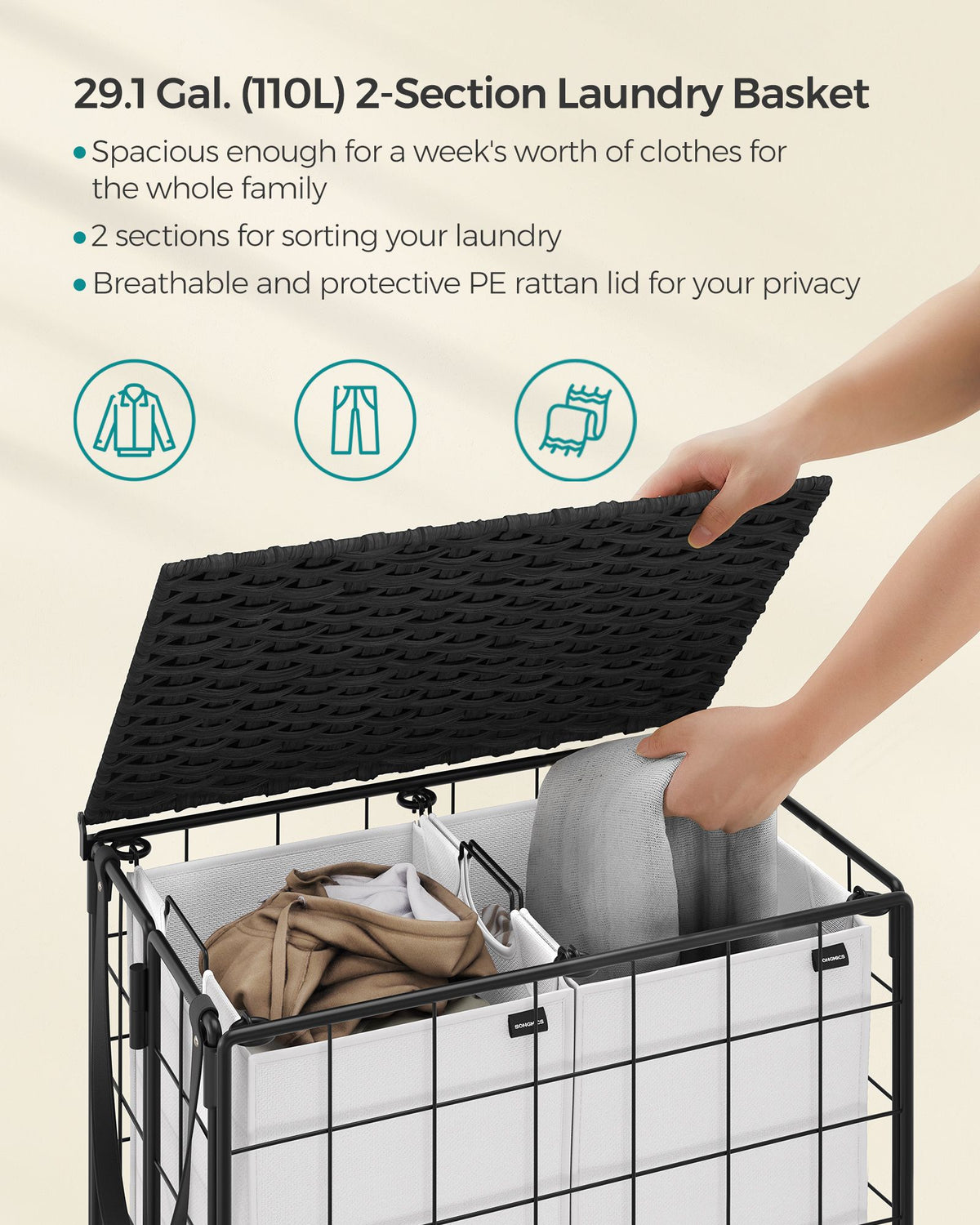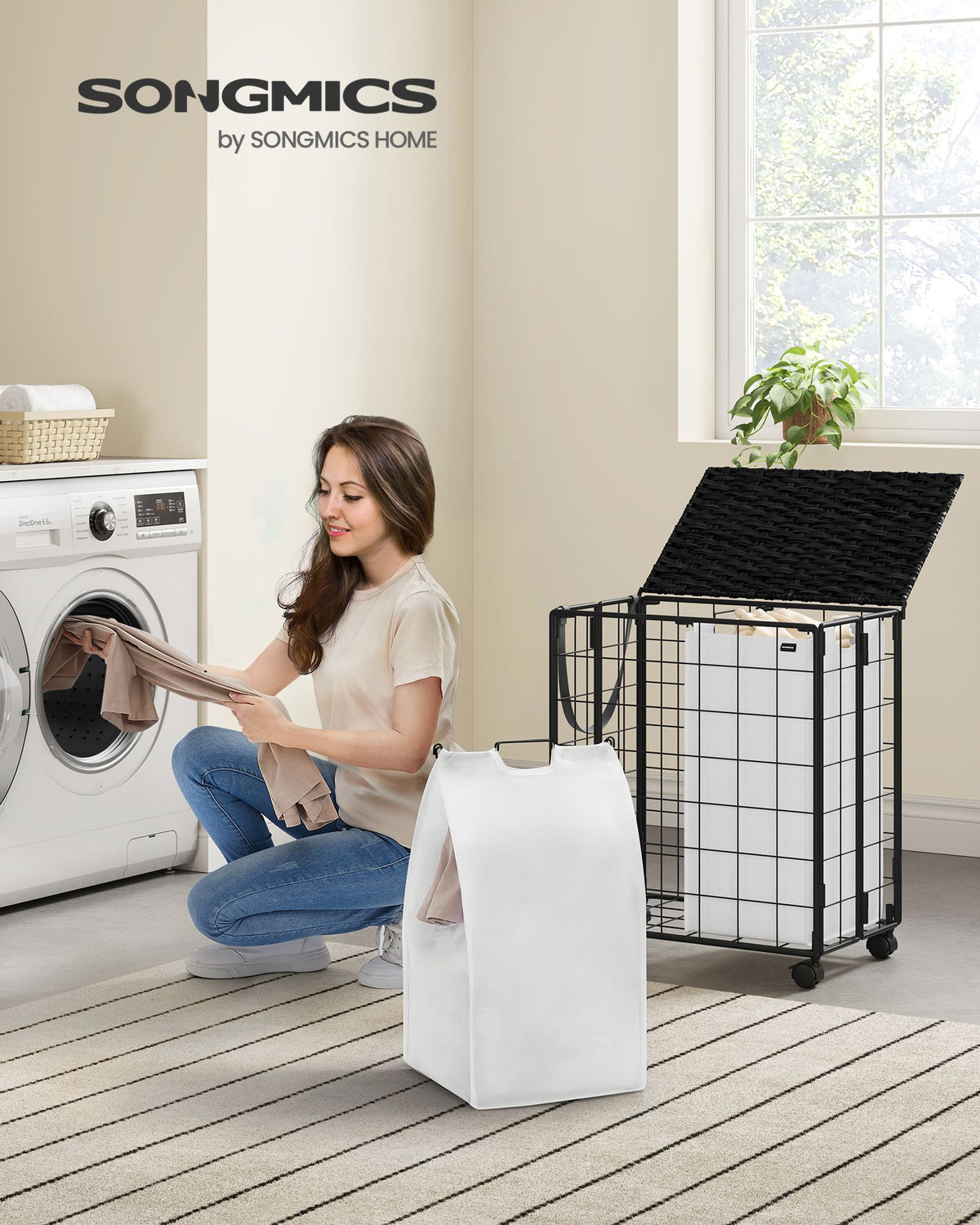 Wasmand 110L zwart-wit 57 x 33 x 65 cm