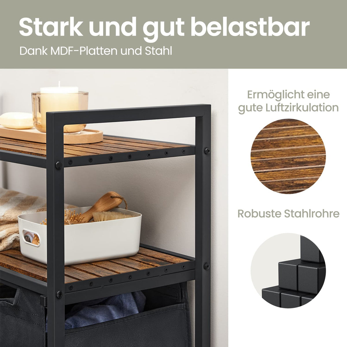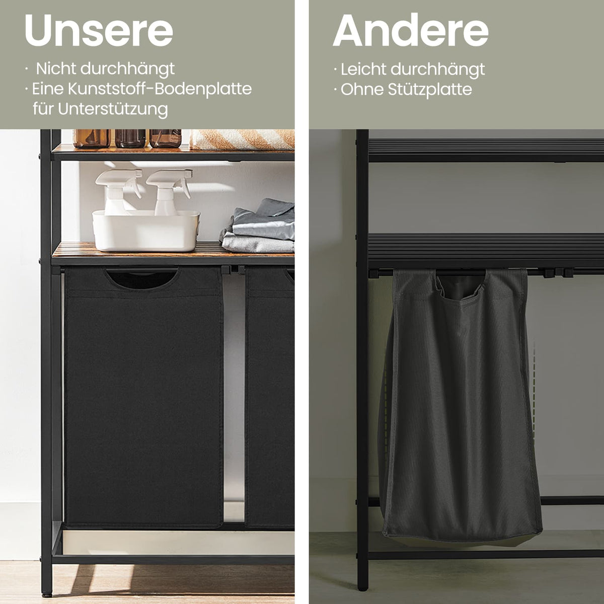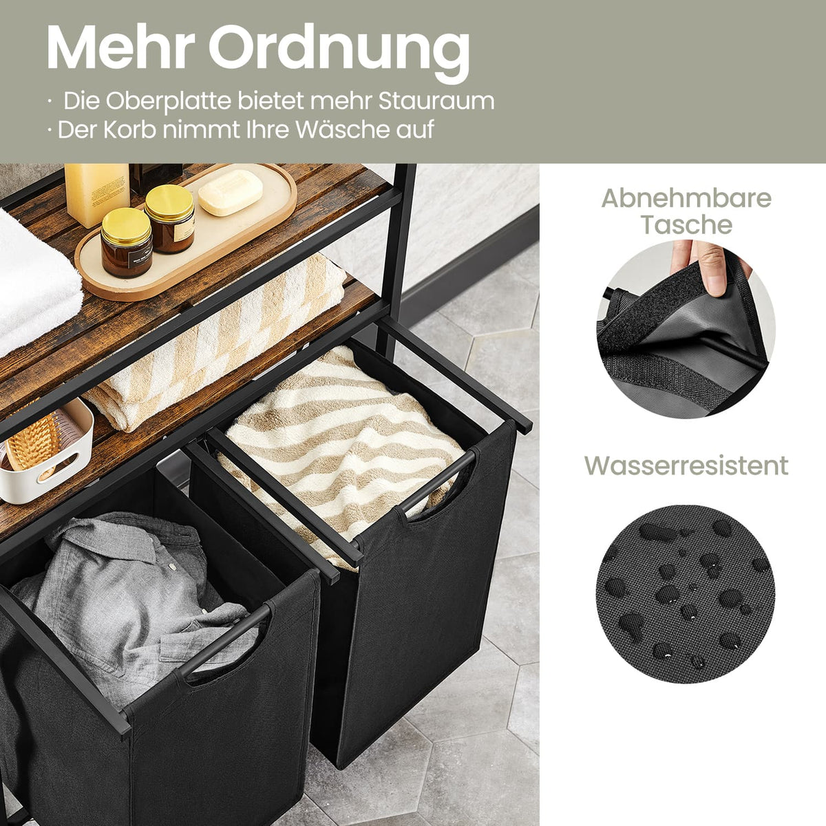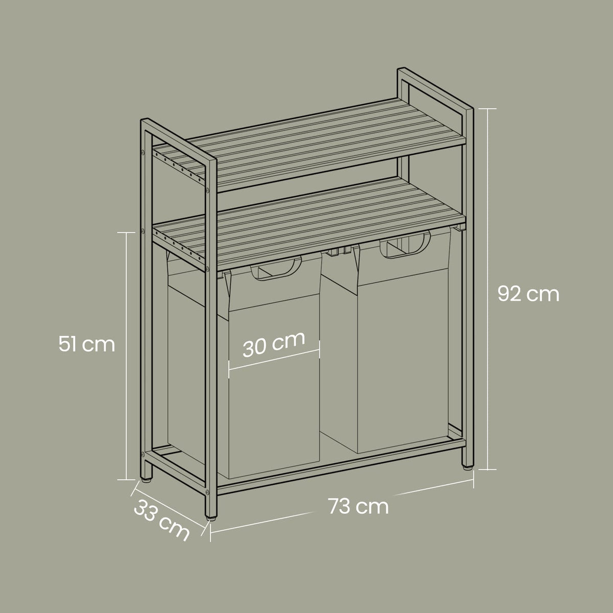Wasmand 2 compartimenten, wasverzamelbak met 2 legplanken, waszak uitschuifbaar en uitneembaar 73 x 33 x 91 cm - BLHB35211B01