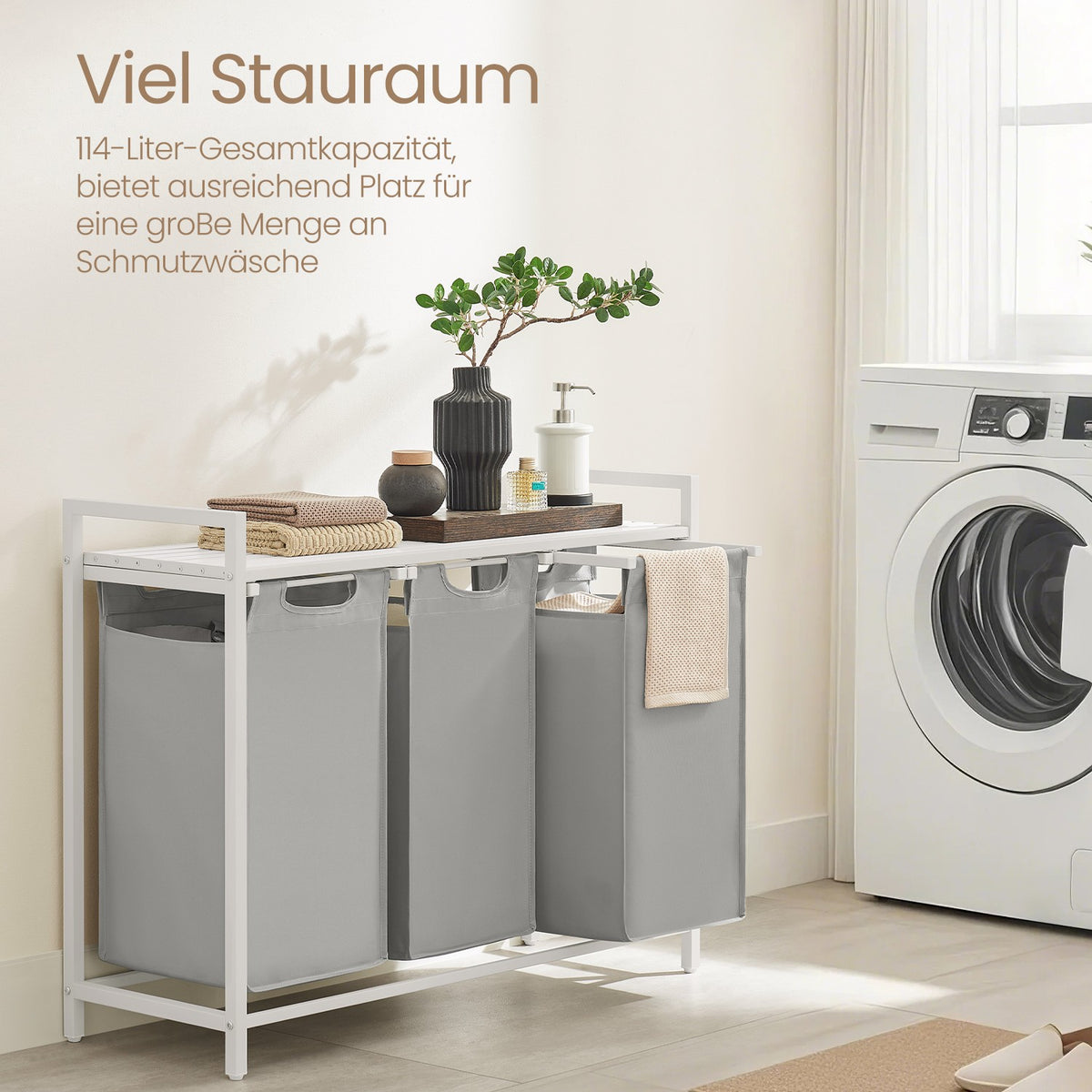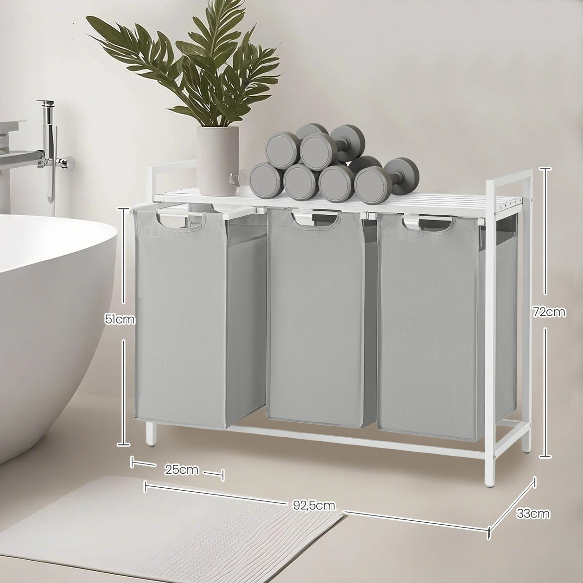 Wasmand 3 compartimenten, wasverzamelbak met plank, wasbox 5 x 33 x 72 cm - BLHB35301W03