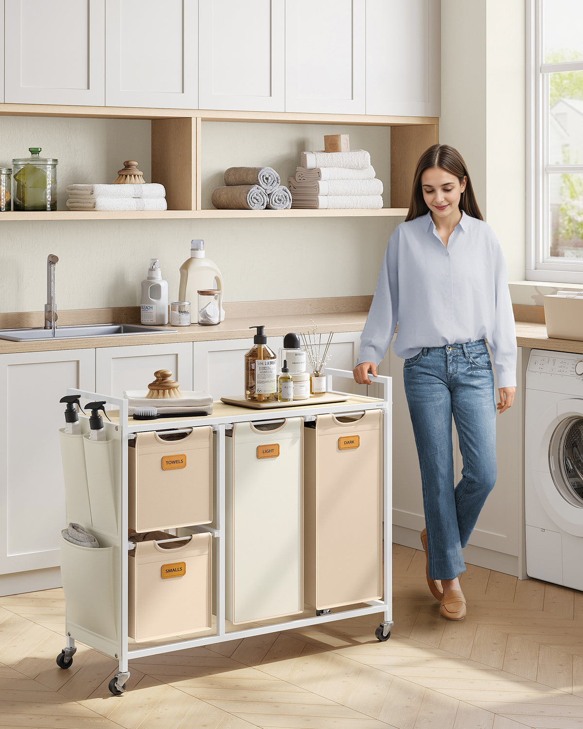 Wasmand 4 compartimenten naturel beige-kameelbruin-crèmewit 5 cm