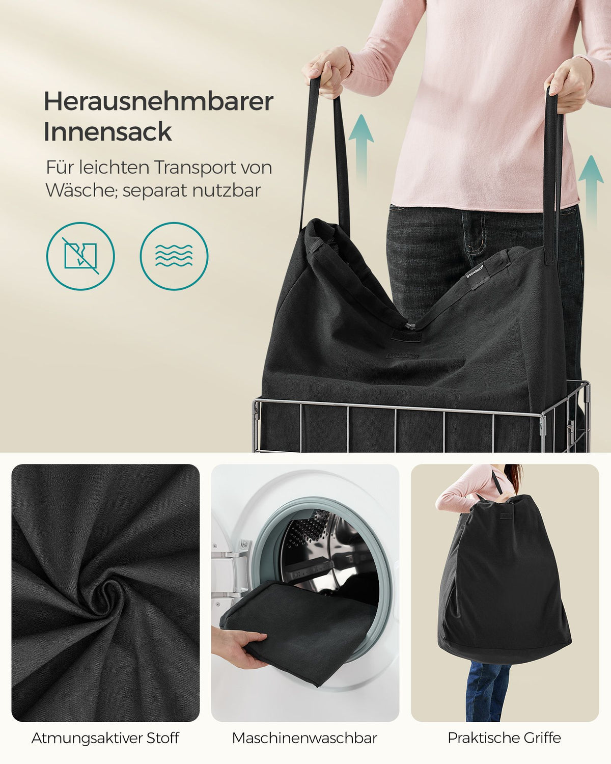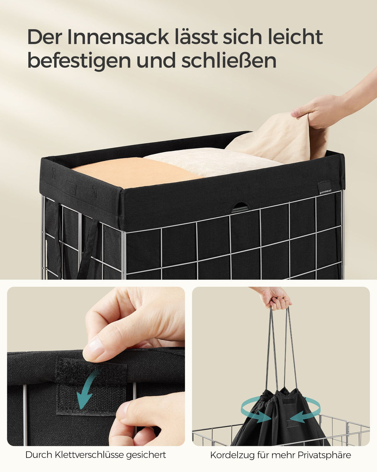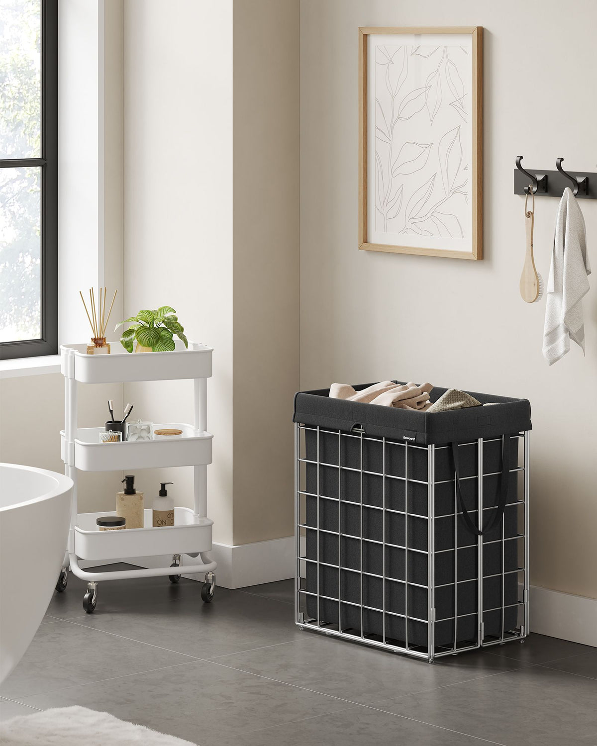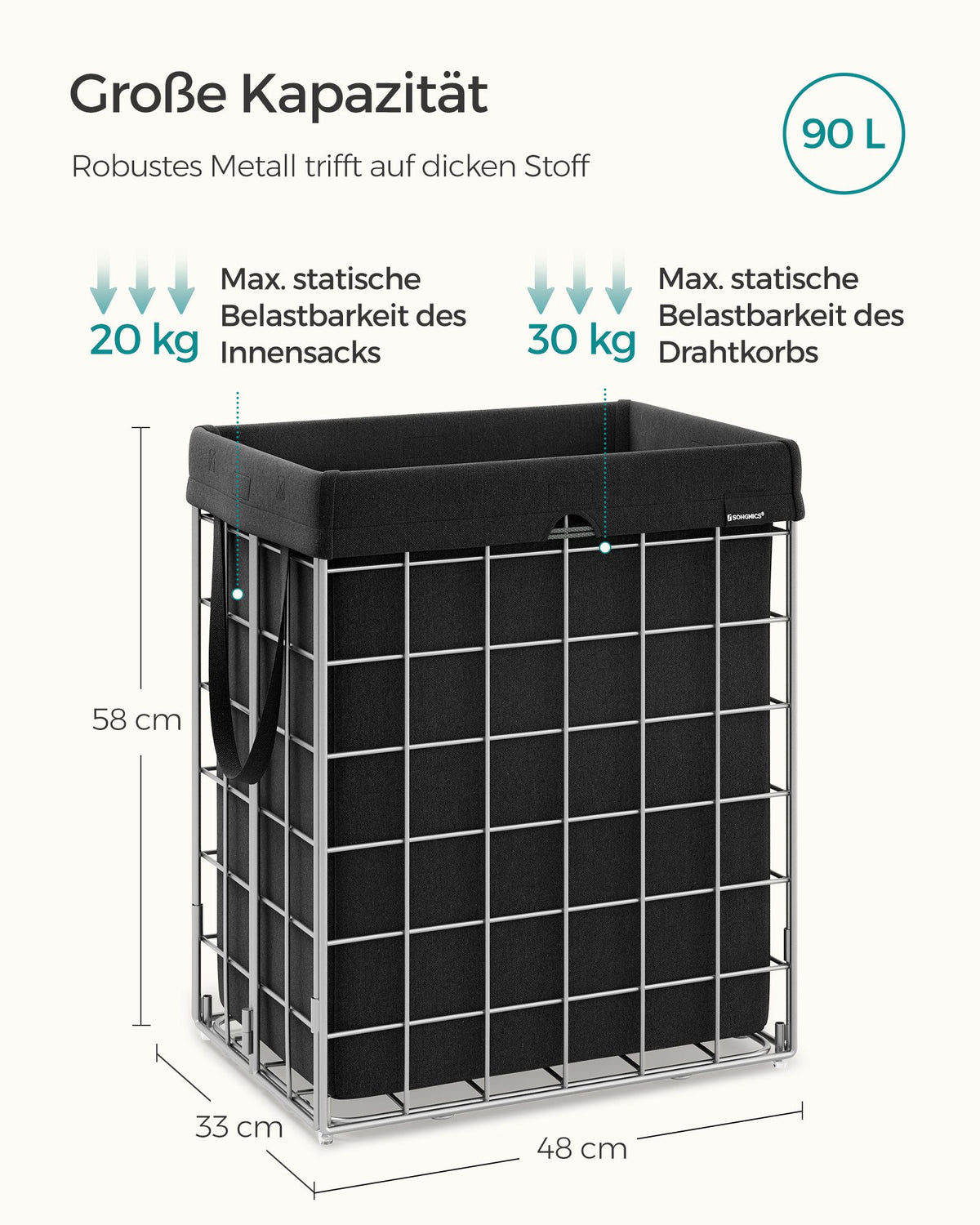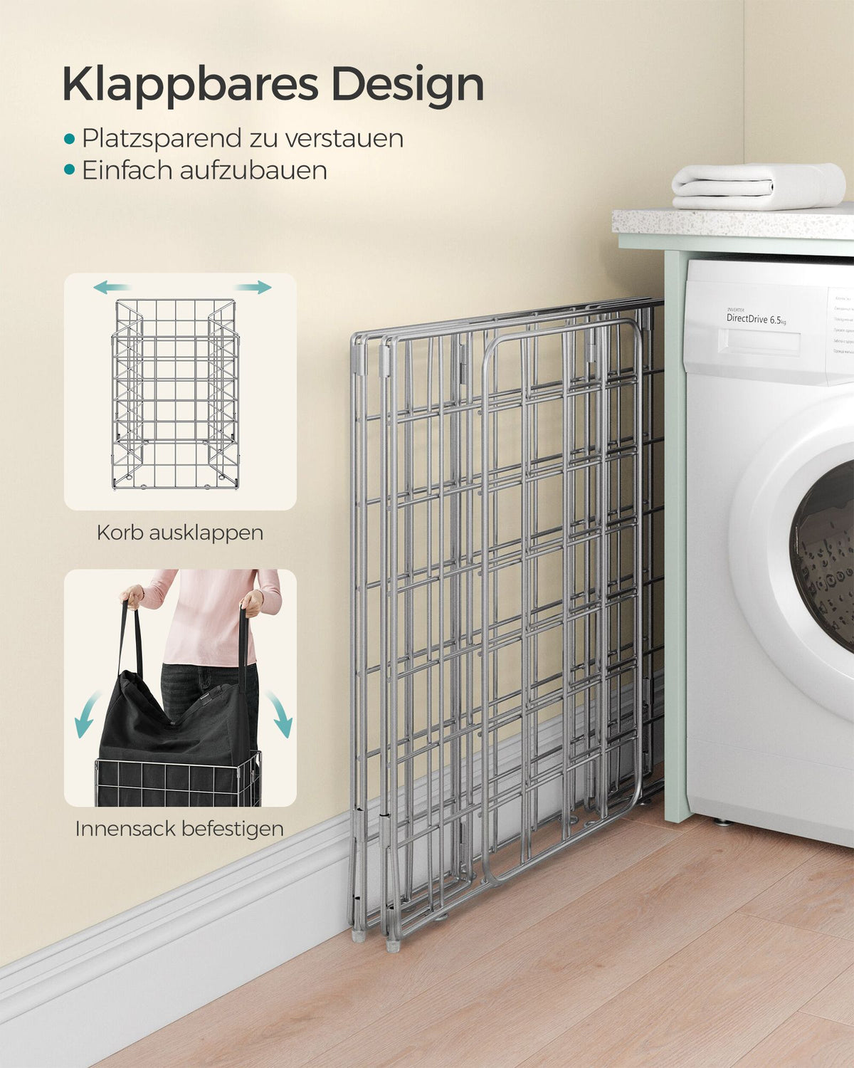 Wasmand 90 L opvouwbaar metalen draadframe zilver-zwart 48 x 33 x 58 cm