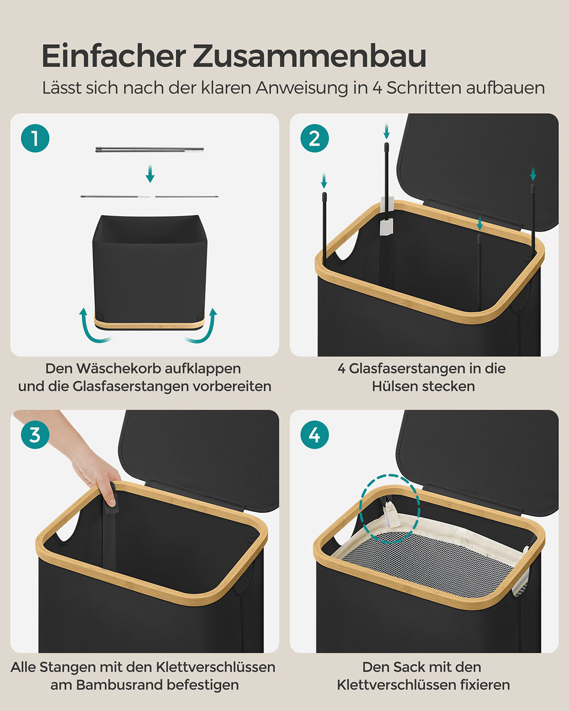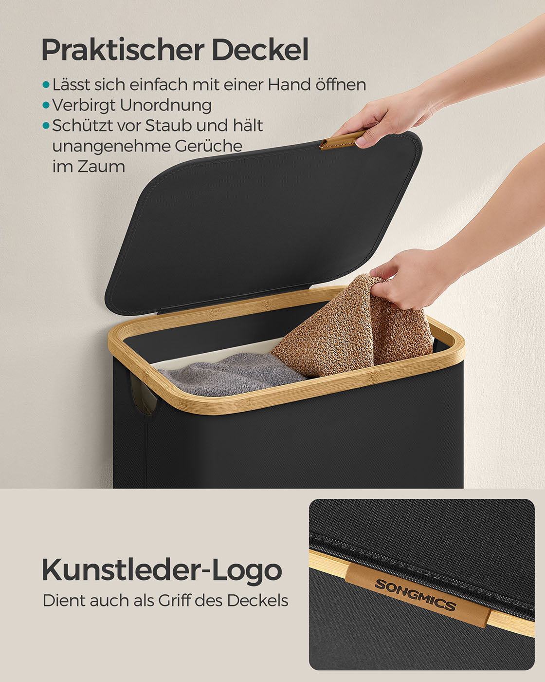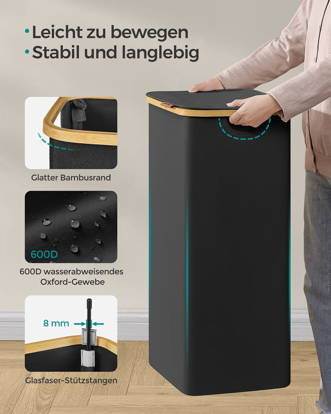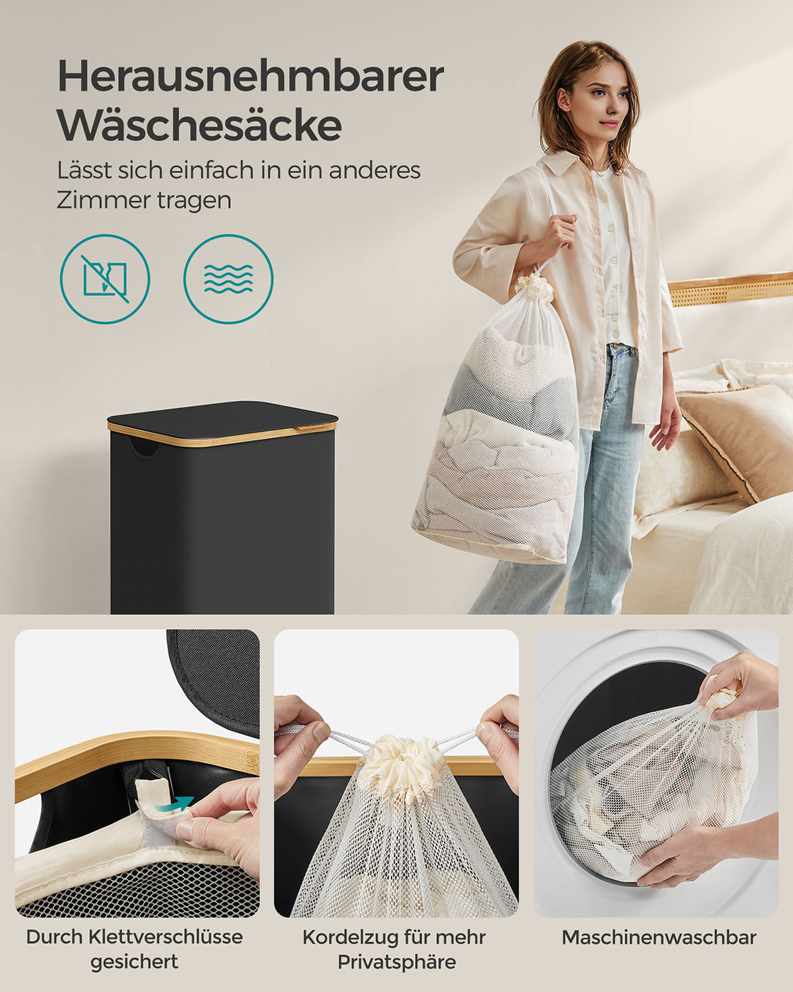 Wasmand 90 liter met uitneembare waszak inktzwart 5 cm