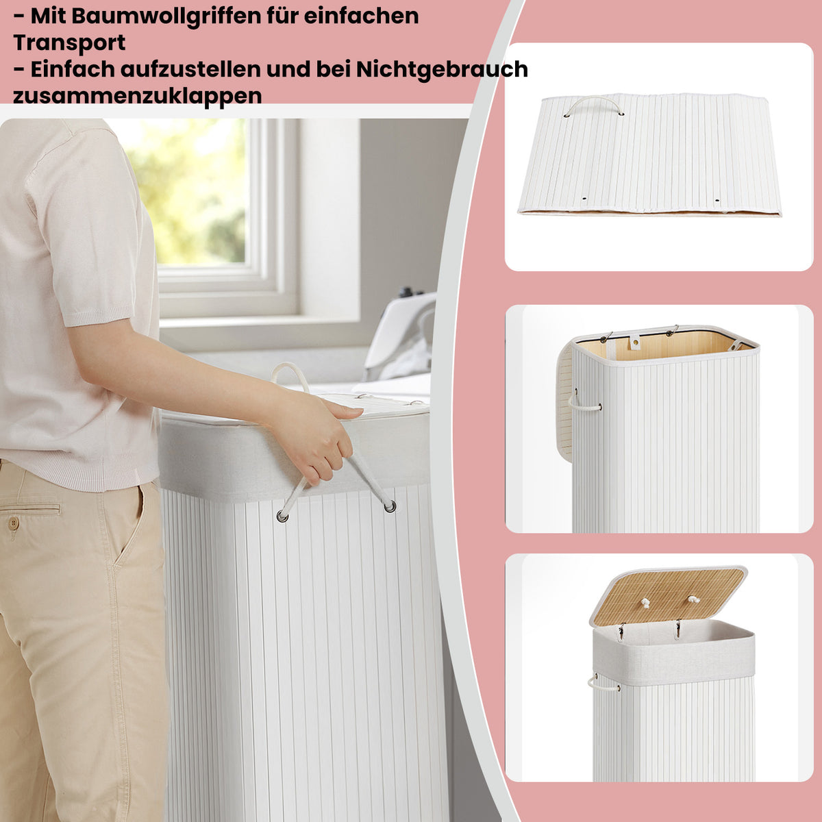Wasmand met deksel, 72 L, wasverzamelaar van bamboe 40 x 30 x 60 cm - LCBB35010W01