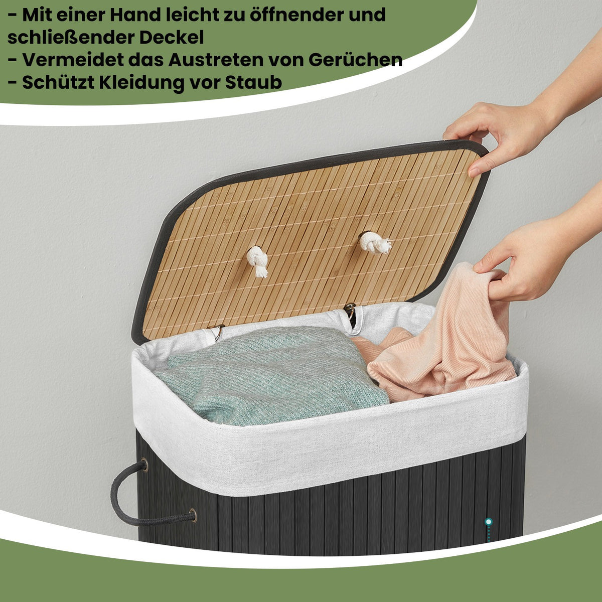 Wasmand met deksel, 72 L, wasverzamelaar van bamboe 40 x 60 x 30 cm - LCBB3510B