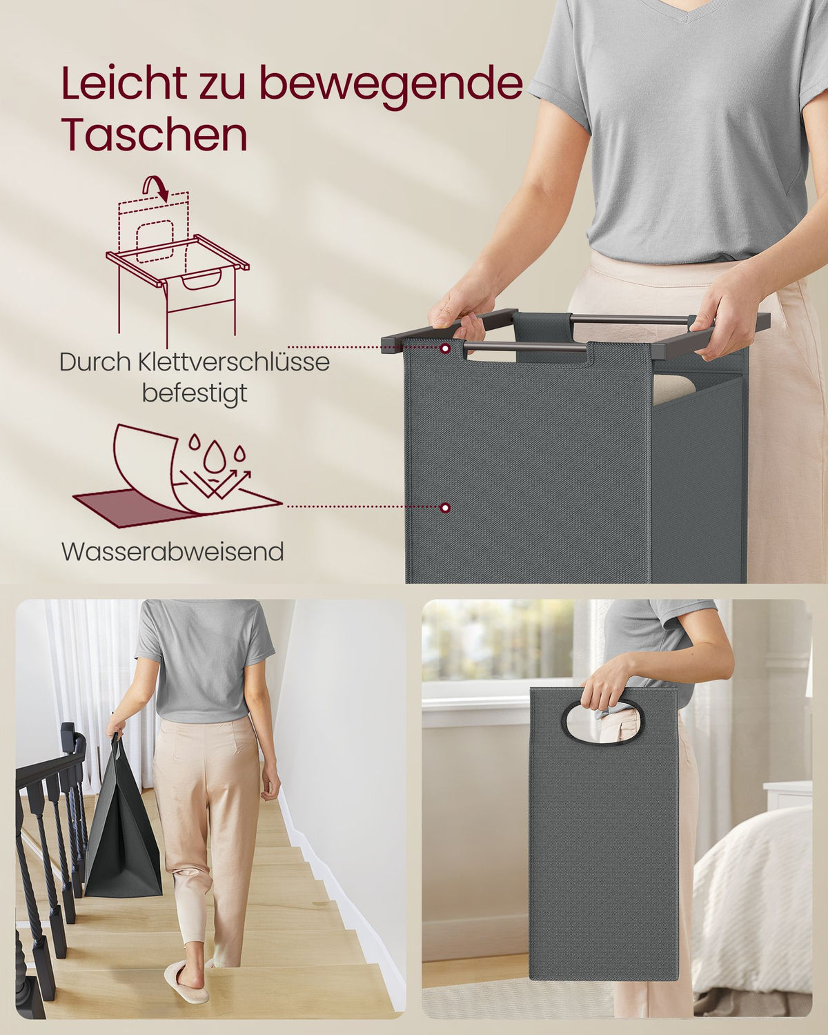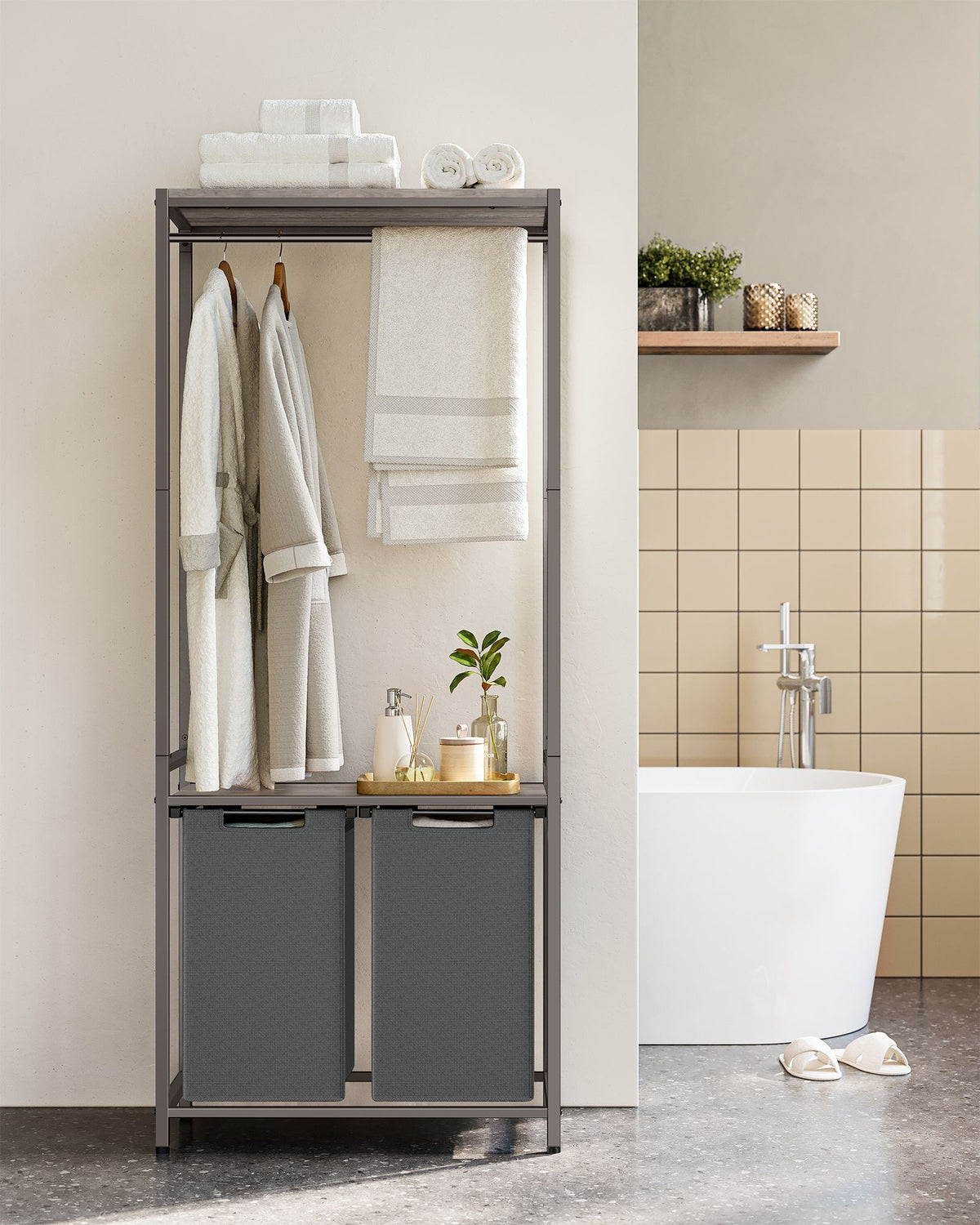 Wasmand met kapstok, greige gevlekt leigrijs 73 x 33 x 177 cm - BLHB35231G02