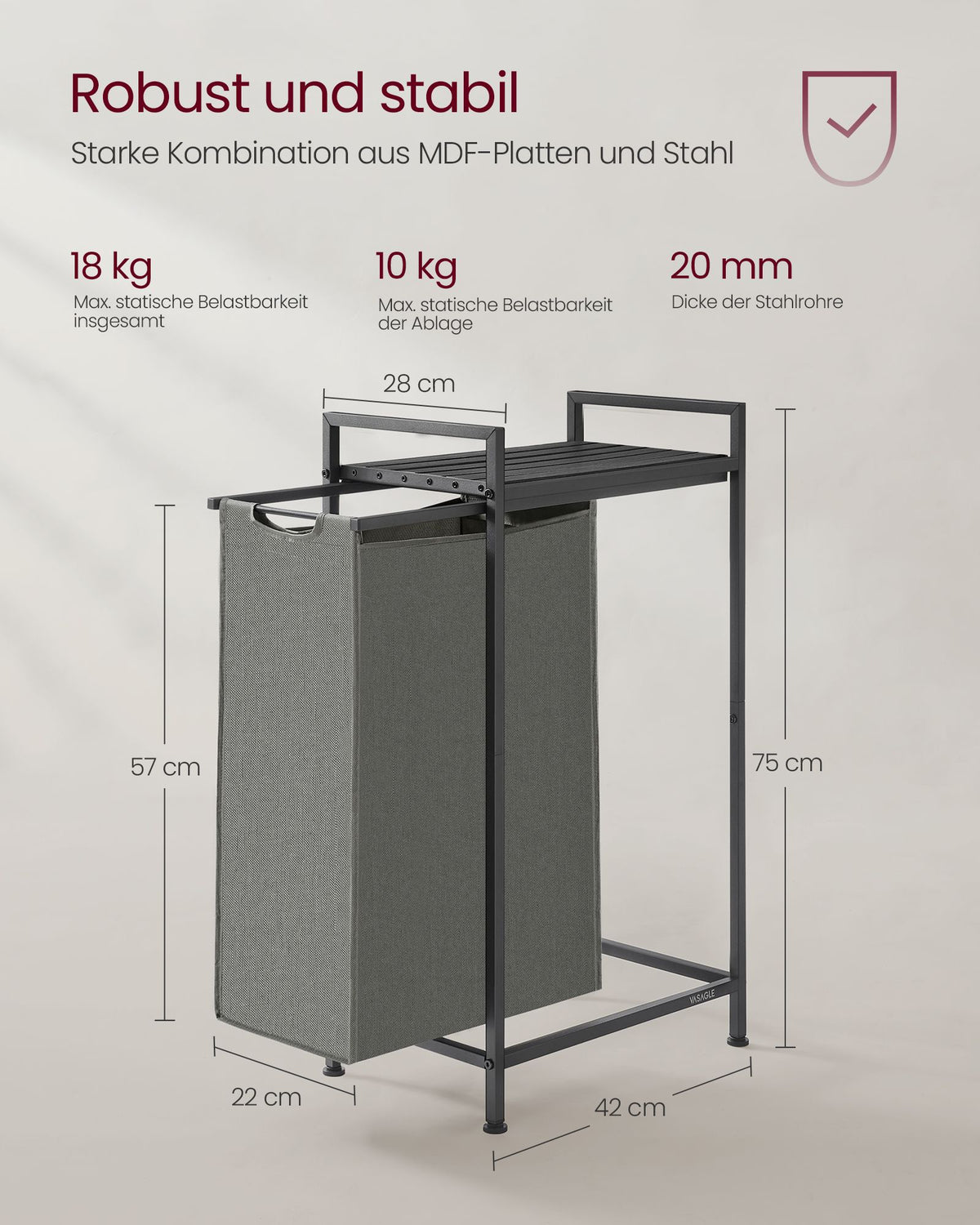Wasmand met plank leigrijs-antracietgrijs 5 x 33 x 71 cm