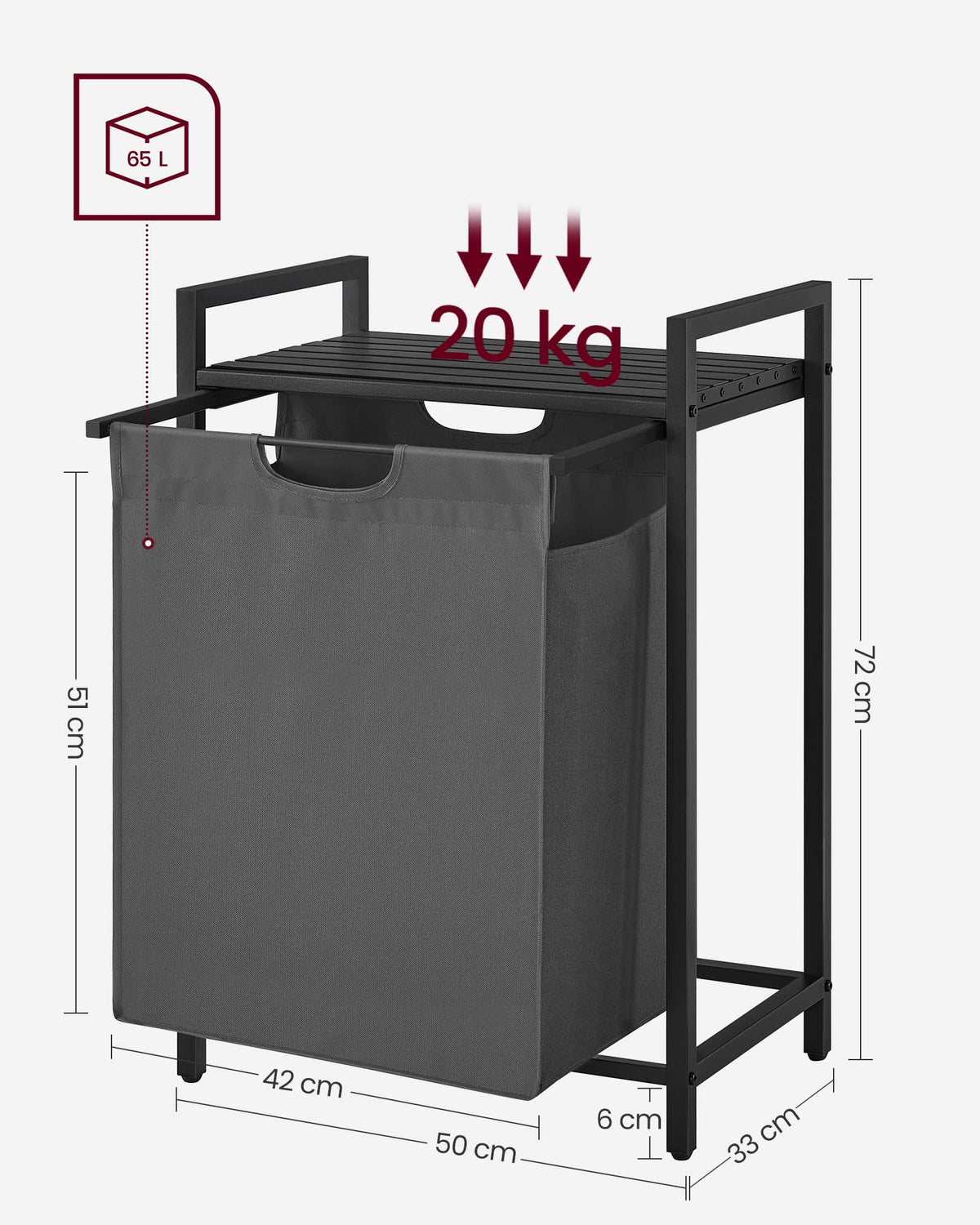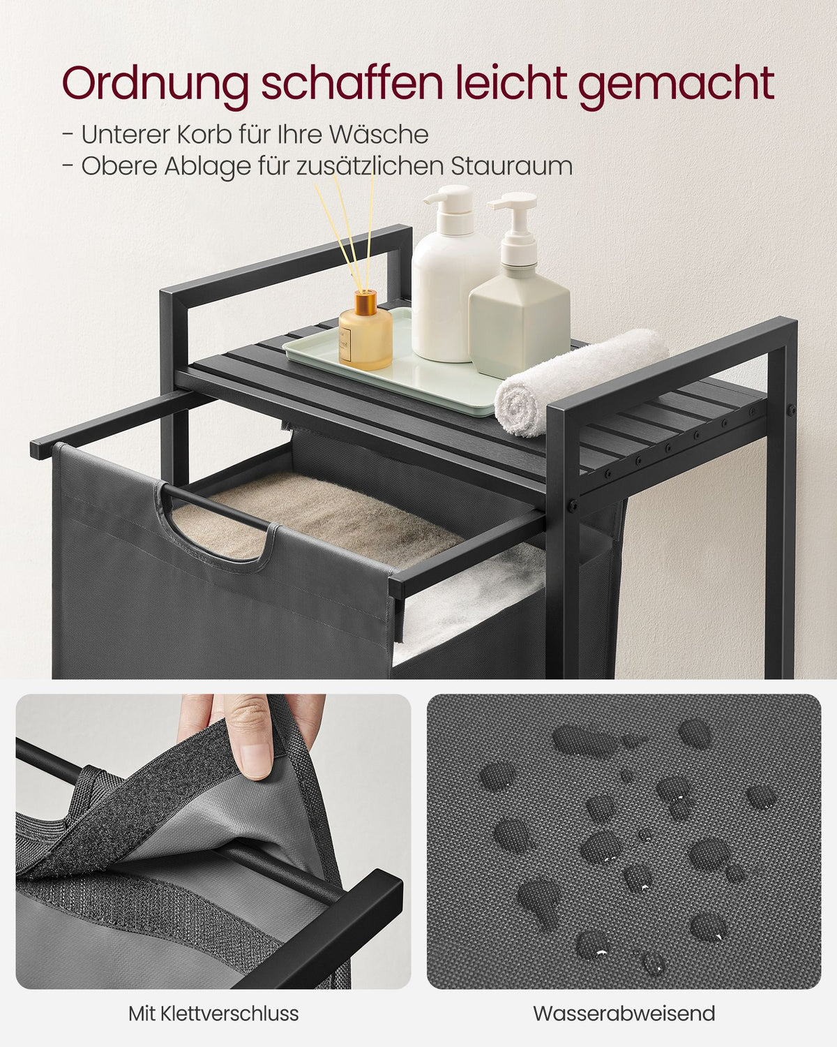 Wasmand met plank, metalen frame, zwartgrijs 73 x 33 x 72 cm
