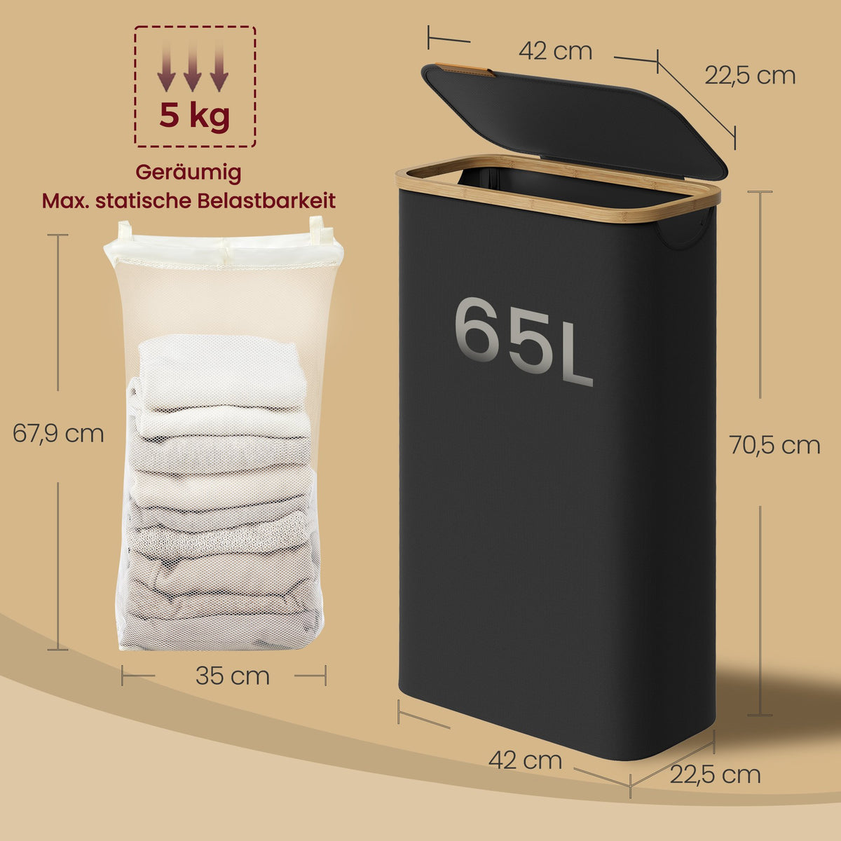 Wasmand, wasverzamelaar met deksel, 65 L 5 cm - LCBB35506B01